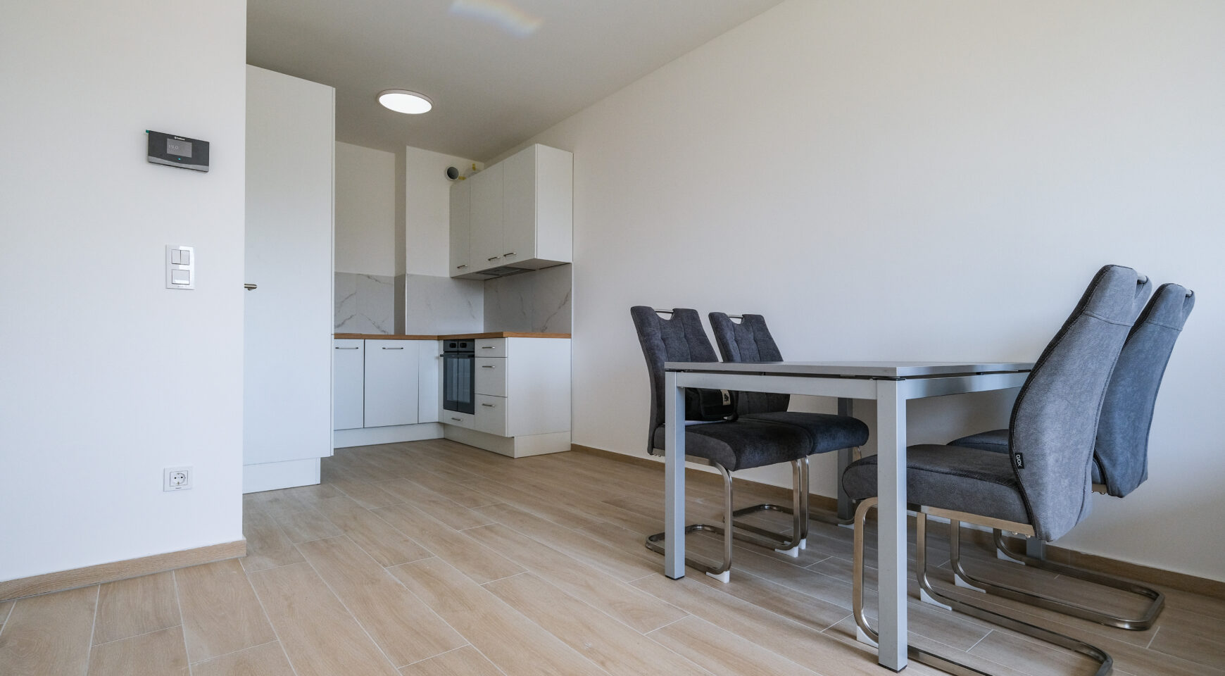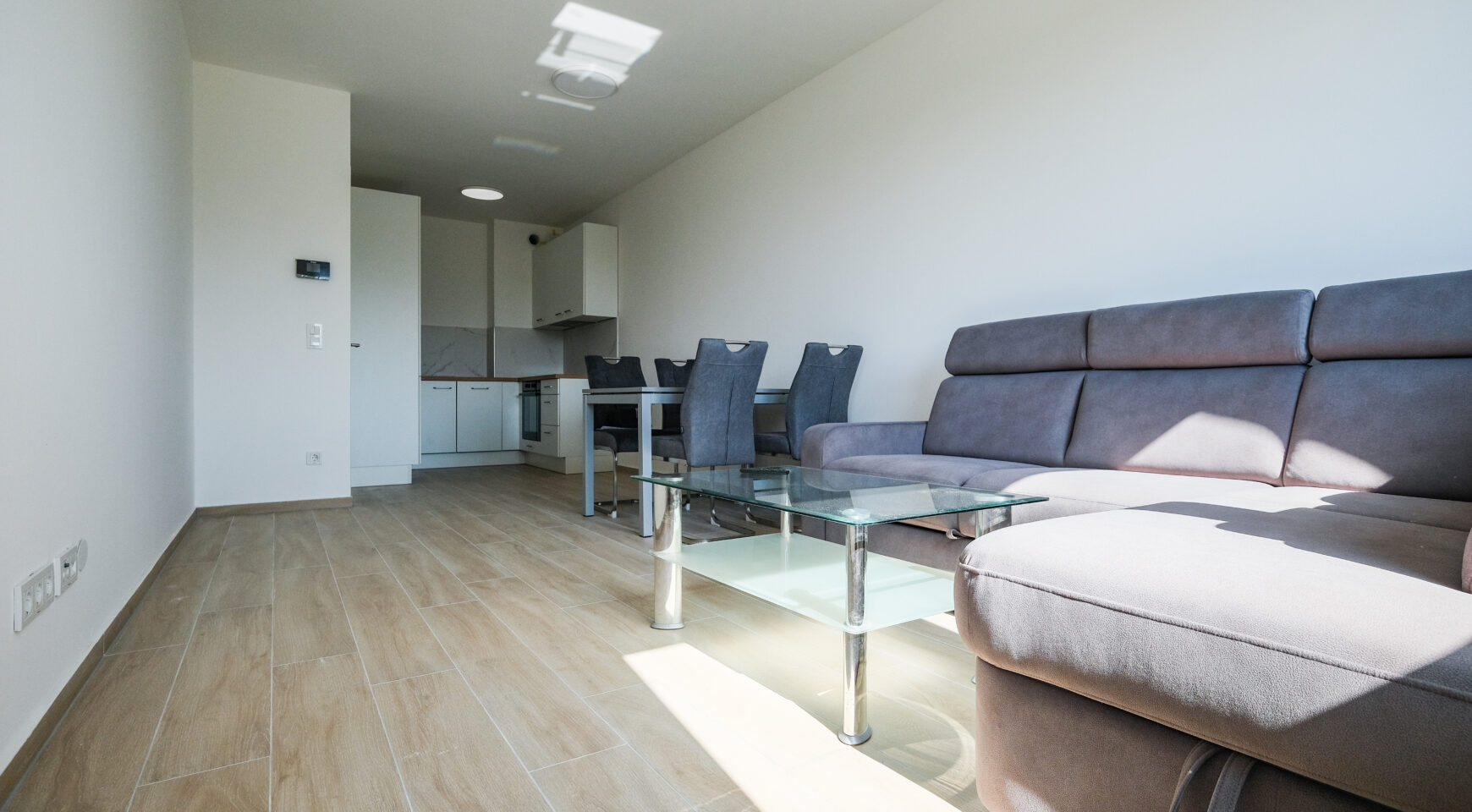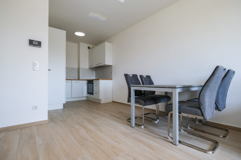 Iznajmljuje se potpuno nov, moderno uređen i kompletno opremljen dvosoban stan ukupne površine 54,76 m² (48 m² stambeno + garažno parkirno mjesto 13,52 m², ko koef.=6,76 m²), smješten u novijem stambenom kompleksu s liftom u Blatu, jednom od brzorastućih dijelova Novog Zagreba.