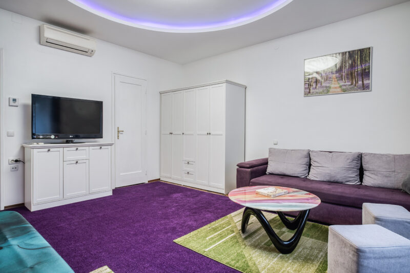 Stan se nalazi u prizemlju stambene zgrade te je opremljen potpuno novim, nekorištenim uređajima uključujući perilicu posuđa, perilicu rublja, mikrovalnu pećnicu, hladnjak s ledenicom i ploču za kuhanje i napu. Stan se sastoji od dnevnog boravka, spavaće sobe, kuhinje/predsoblja i kupaonice.