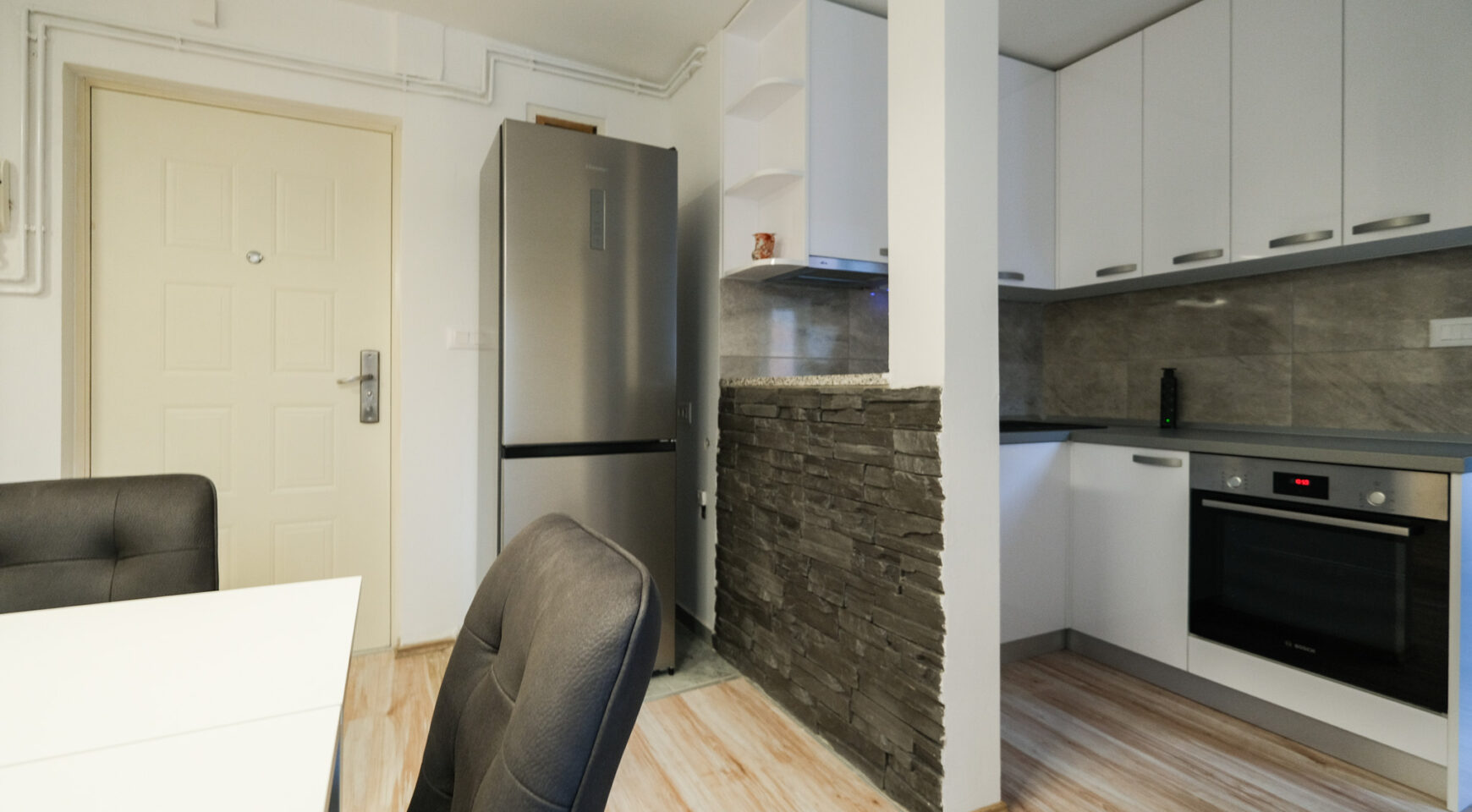 Stan je potpuno renoviran i opremljen 2025. godine. Površine je 38 m2. Sastoji se od ulaza, dnevnog boravka s blagovaonicom i kuhinjom, izdvojene spavaće sobe i kupaonice.
