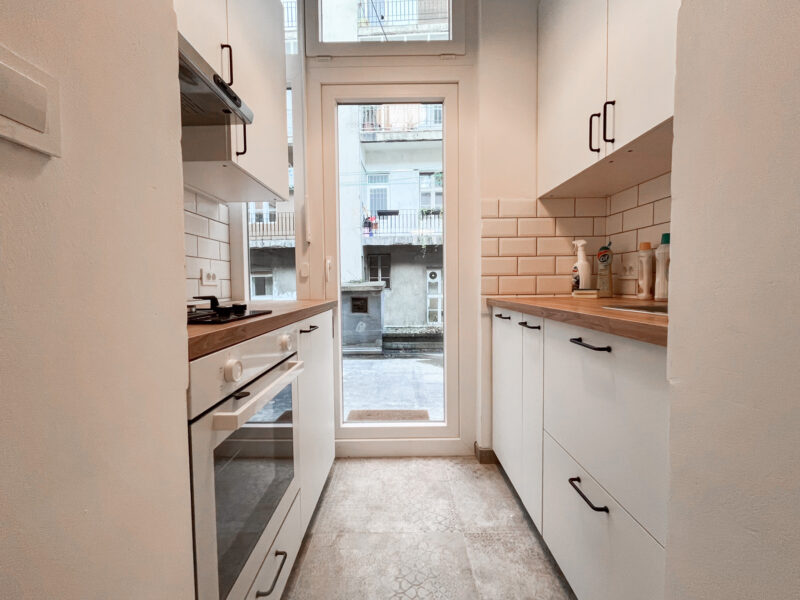 Stan je potpuno renoviran i uređen 2025. godine. Površine je 42 m2, a sastoji se od ulaznog hodnika, dnevnog boravka s blagovaonicom i kuhinjom, izdvojene spavaće sobe i kupaonice s tuš kabinom i toaletom. Stan ima izlaz na zajedničku terasu zgrade. Uz stan dolazi i spremište.