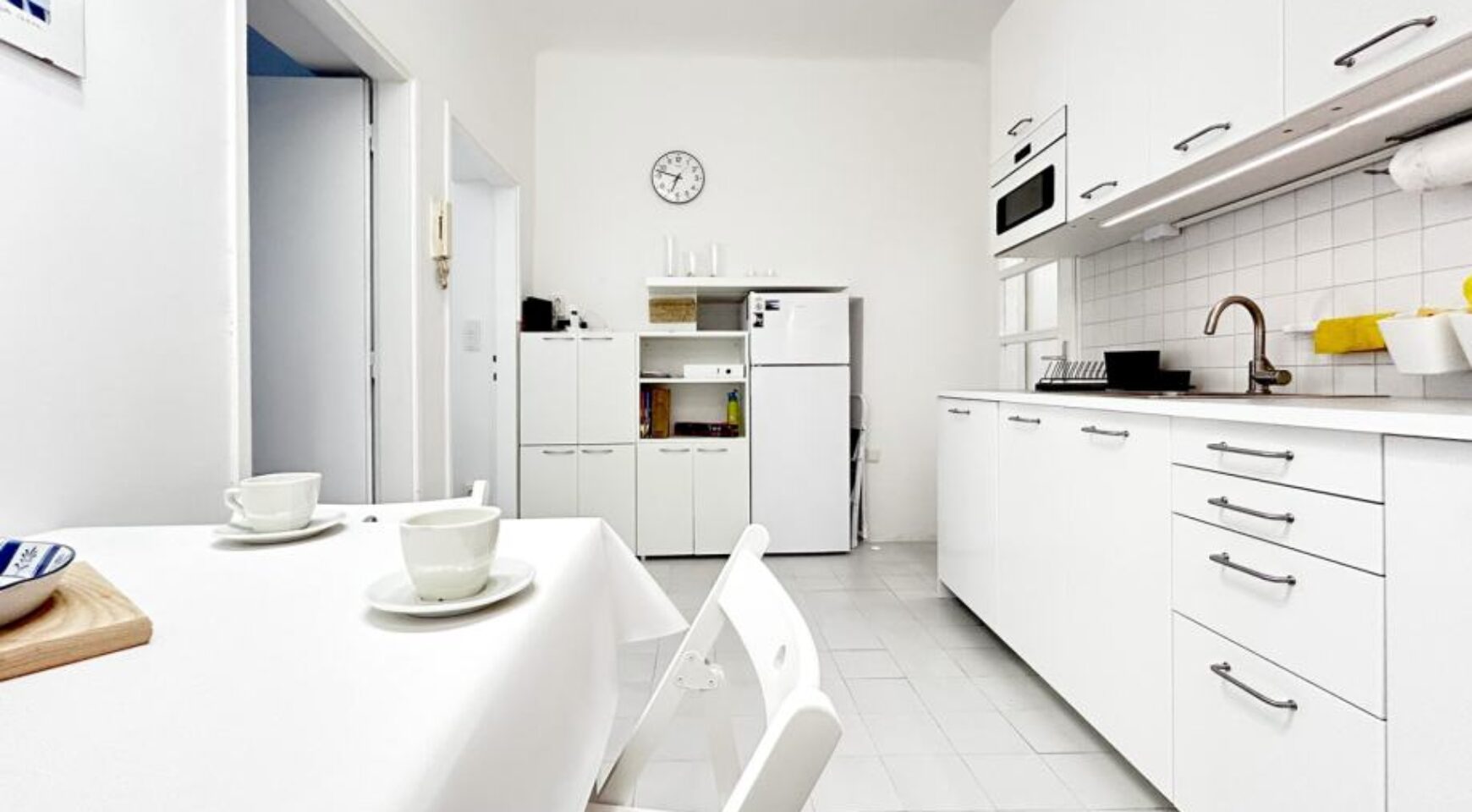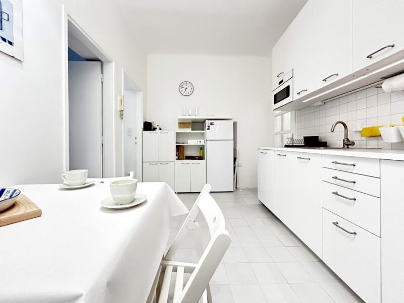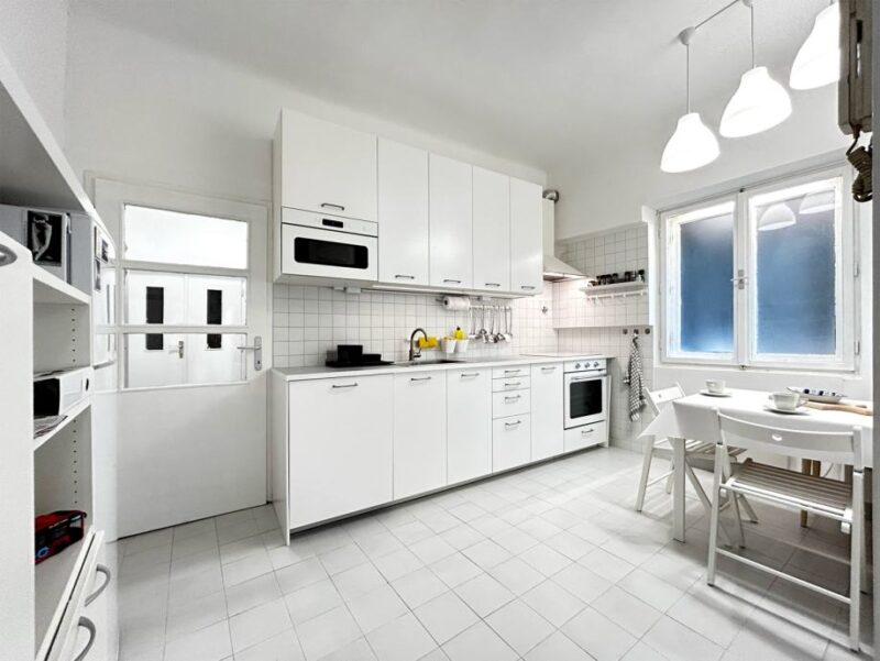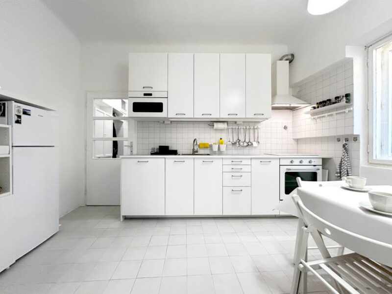 Kuhinja je opremljena perilicom suđa, napom, mikrovalnom, pećnicom, strujnom pločom za kuhanje, hladnjakom i ostalim kuhinjskim elementima.