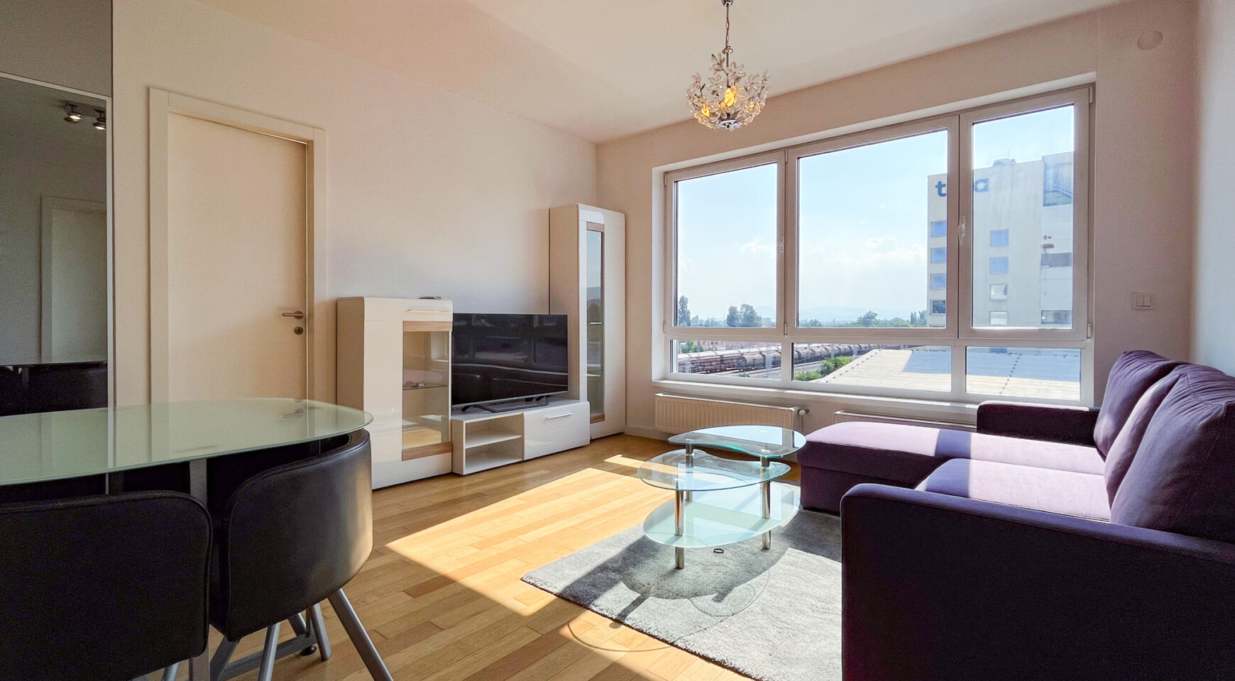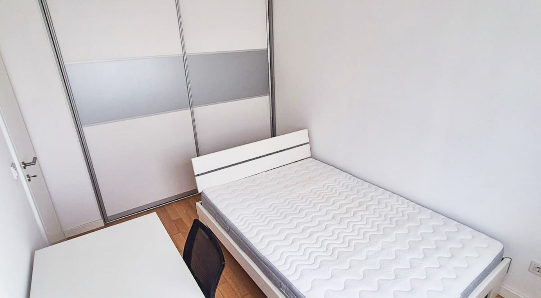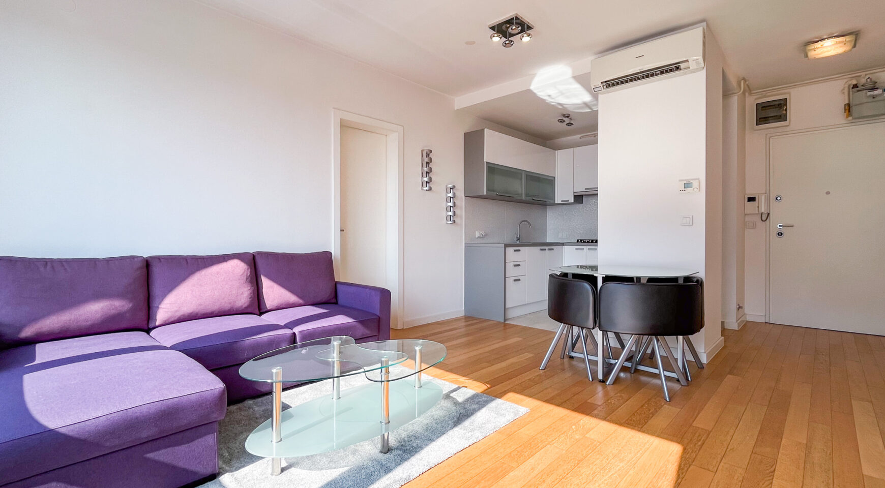 Stan je stambene površine 58,27 m2, a sastoji se od ulaznog hodnika, svjetlog dnevnog boravka s lijepim velikim prozorima, potpuno opremljene kuhinje i blagovaonice, dvije kupaonice (jedna s tuš kabinom, jedna s kadom, a obje imaju svoj WC) te dvije spavaće sobe od kojih je jedna namještena kao ured, ali se može i prenamijeniti u spavaću sobu – potpuno prema želji najmoprimaca!
