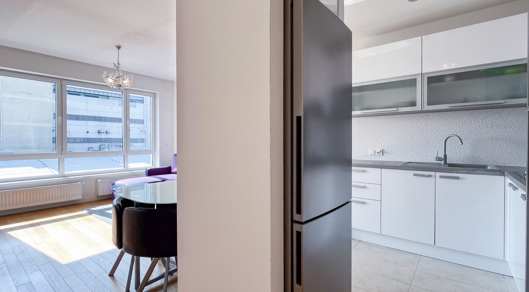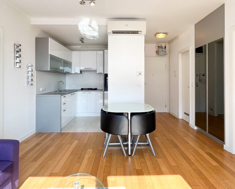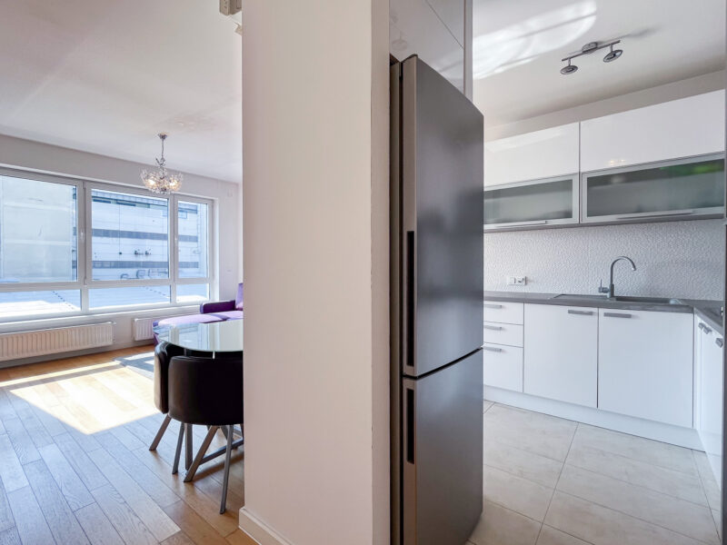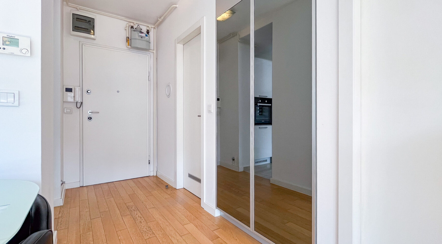 Stan je stambene površine 58,27 m2, a sastoji se od ulaznog hodnika, svjetlog dnevnog boravka s lijepim velikim prozorima, potpuno opremljene kuhinje i blagovaonice, dvije kupaonice (jedna s tuš kabinom, jedna s kadom, a obje imaju svoj WC) te dvije spavaće sobe od kojih je jedna namještena kao ured, ali se može i prenamijeniti u spavaću sobu – potpuno prema želji najmoprimaca!