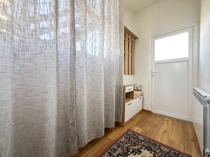 Stan se nalazi u kući, vrlo je ugodan i lijepo uređen i ima površinu od 50 m2. Potpuno je namješten i spreman za useljenje.