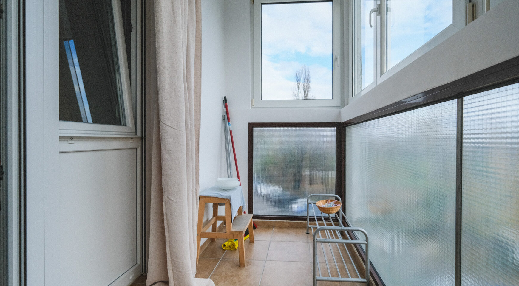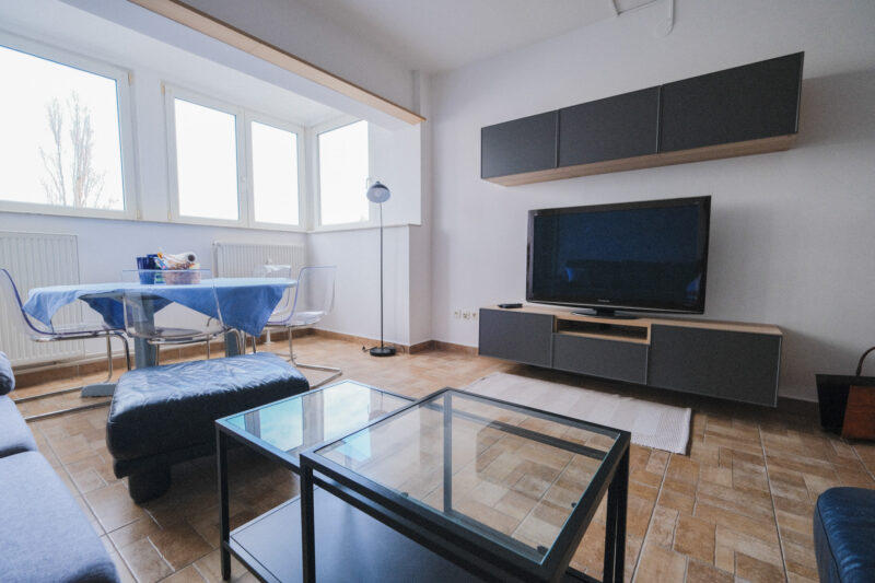 Stan se sastoji od dnevnog boravka povezanog s kuhinjom, radne sobe, spavaće sobe s ostakljenom lođom, te adaptirane kupaonice s WC-om i perilicom rublja. Zbog orijentacije prema istoku, stan je svijetao i ima otvoren pogled prema nasipu i dječjem parku, što pridonosi ugodi boravka.
