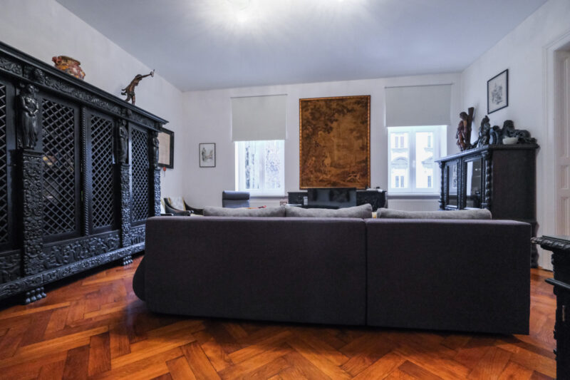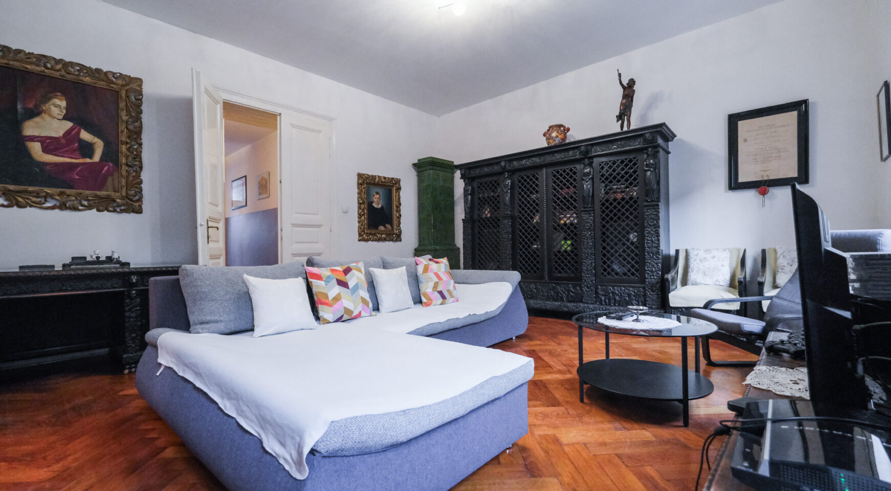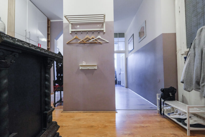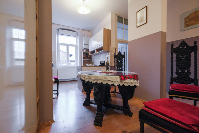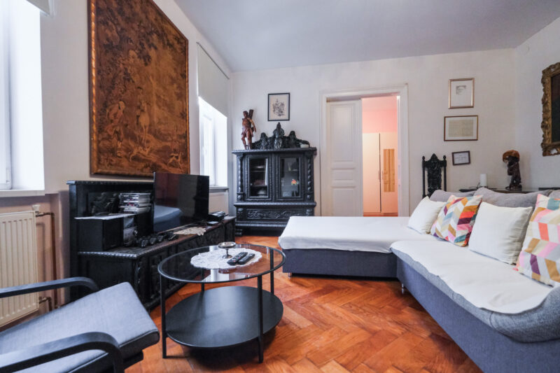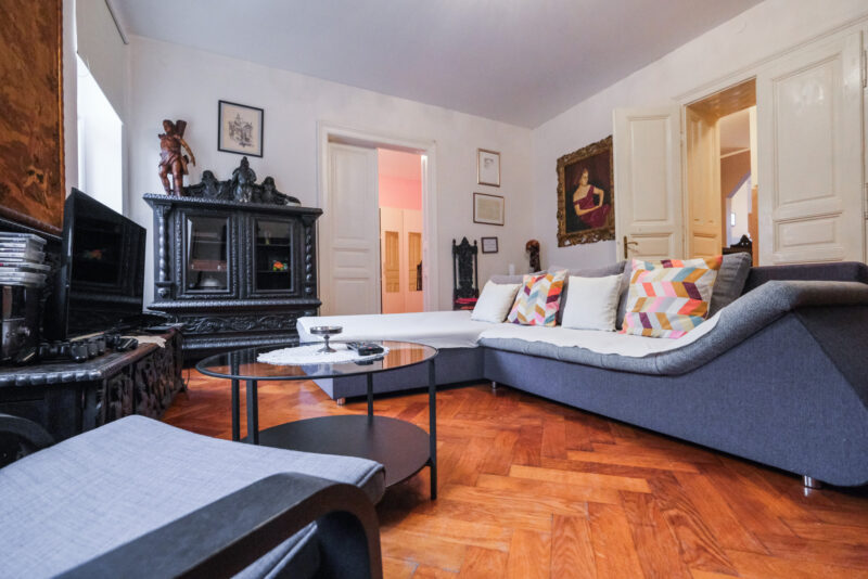 Stan je prostran i prozračan, visokih stropova i ugodne atmosfere, a sastoji se od ulaza, kuhinje s blagovaonskim prostorom, dnevnog boravka, dvije spavaće sobe, kupaonice i odvojenog toaleta. Stanu također pripada spremište.