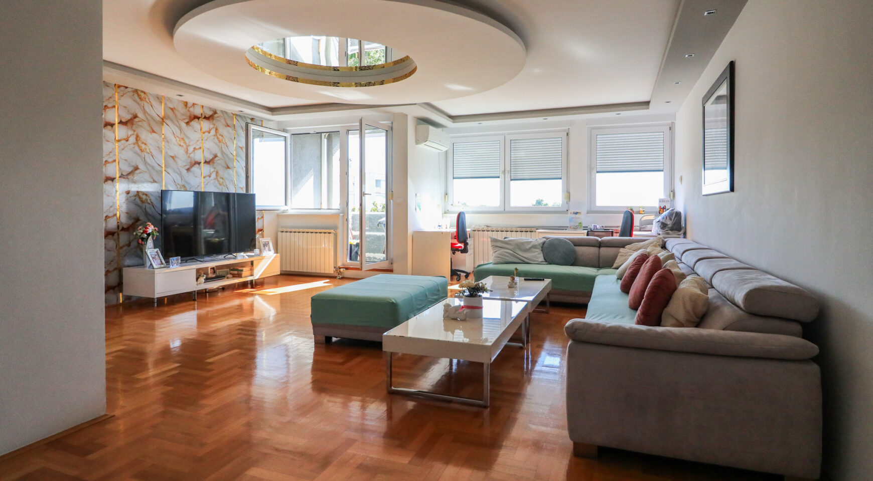 Stan je izuzetno prostran, odlično održavan, vrlo dobrog tlocrta, klimatiziran, ugodan te u potpunosti opremljen i namješten.