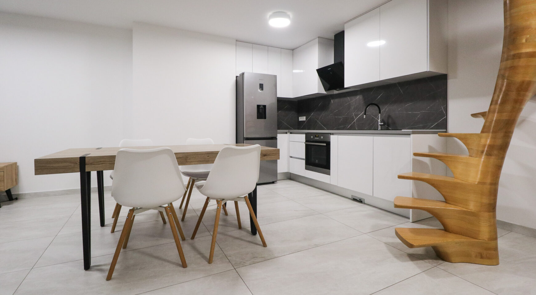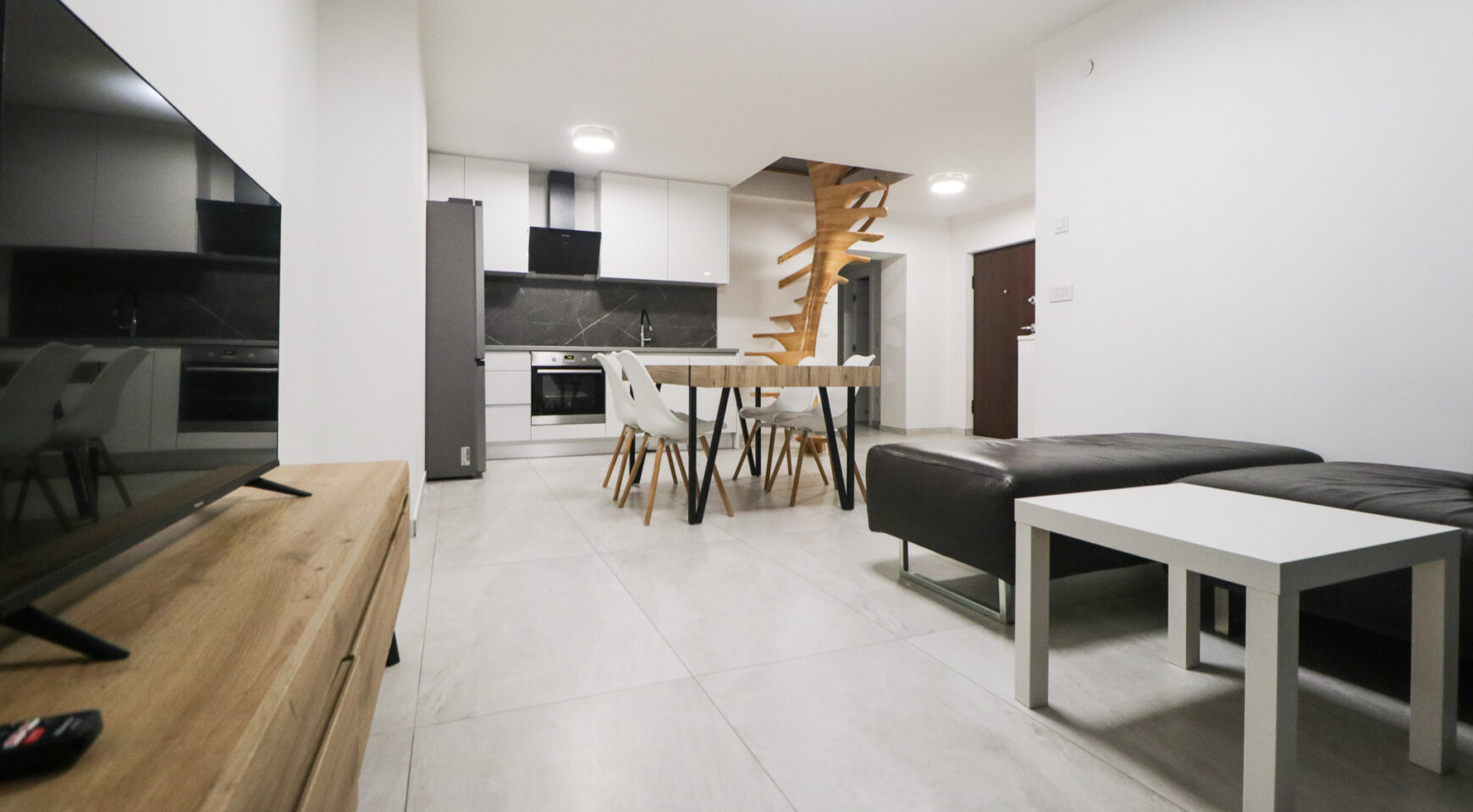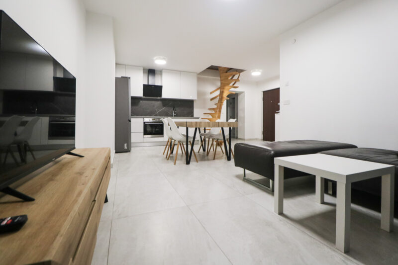 Stan se sastoji od open space dnevnog boravka s blagovaonicom i modernom kuhinjom, tri spavaće sobe, dvije kupaonice, walk-in ormara/ostave te dva balkona. Jedna od spavaćih sobi se nalazi na gornjoj etaži. Balkoni su raspoređeni i na sjevernu i na južnu stranu stana te imaju neometan pogled.