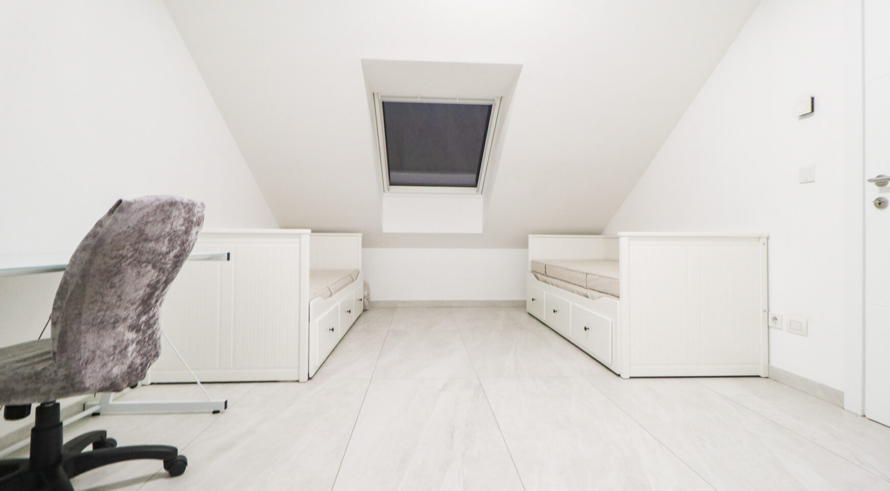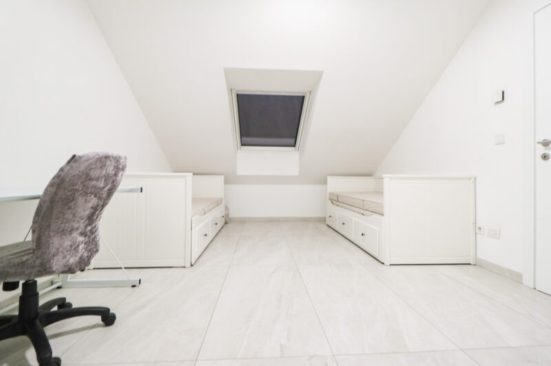 Opremljen je svim novim uređajima kao što su perilica rublja, perilica posuđa, staklokeramička ploča za kuhanje, hladnjak sa zamrzivačem, novom PVC stolarijom, dvjema tuš kabinama, toaletima, protuprovalnim vratima, električnim roletama, Velux prozorima sa sjenilima, centralnim usisavečem itd. Sadrži dva bračna kreveta, dva jednostruka kreveta koja se razvlače pa mogu postati još dva bračna te kauč u dnevnom boravku. Uz ormare te walk-in ormar, za dodatno spremište stvari postoji i tavanski prostor.