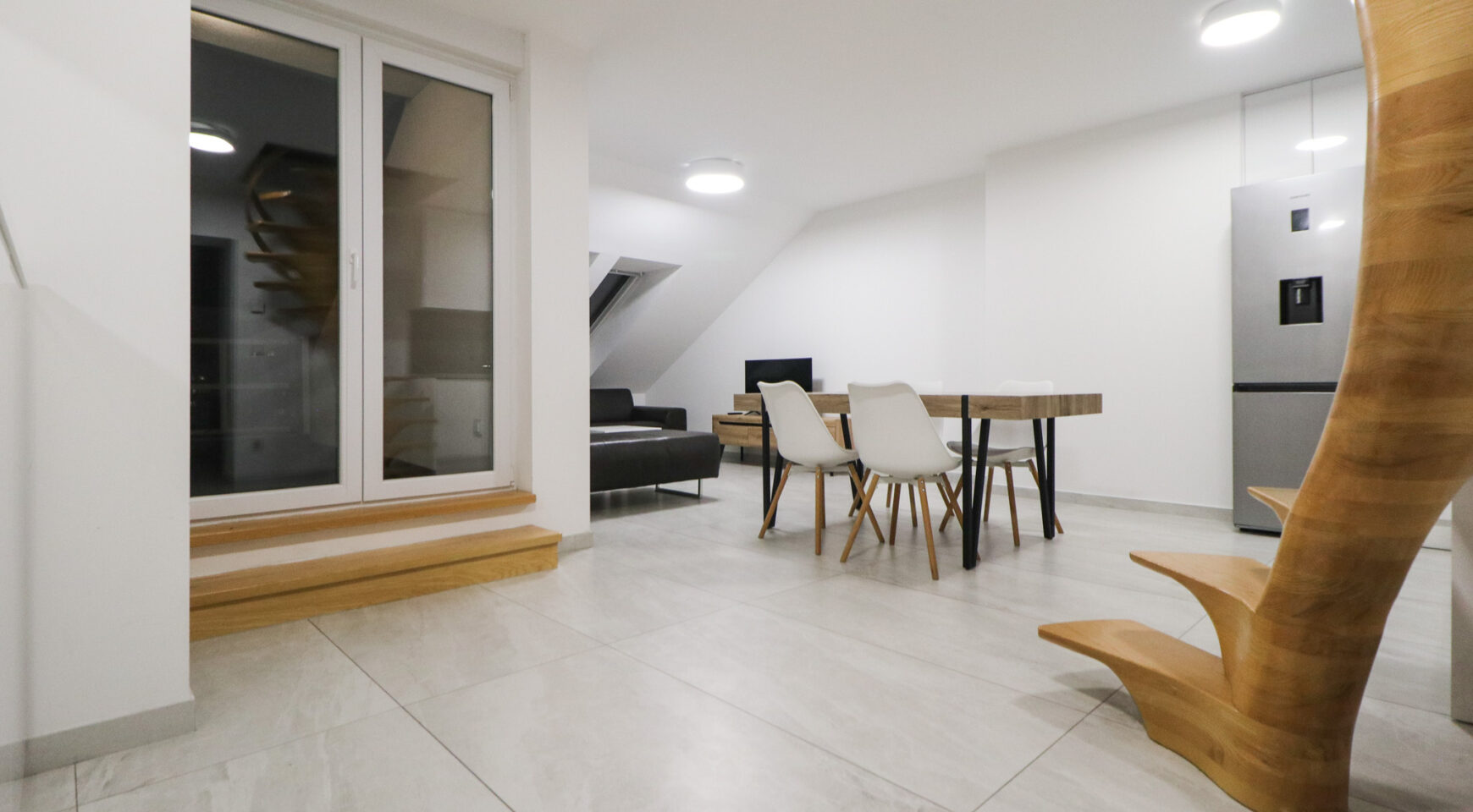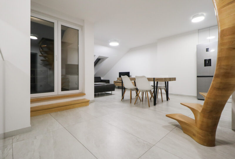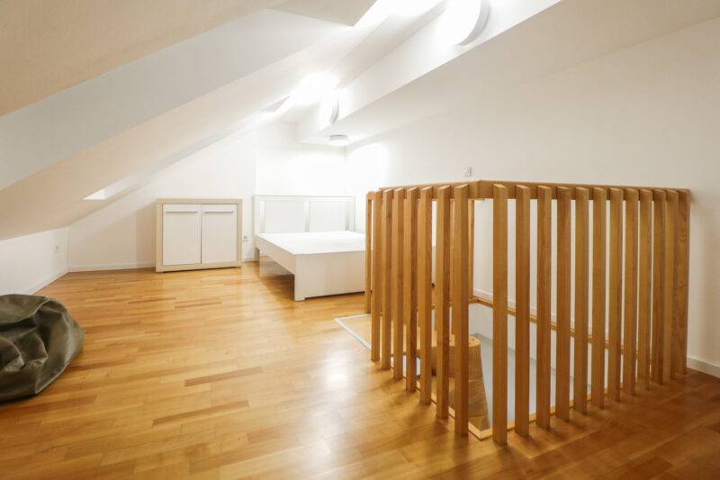 Prostire se na dvije etaže i ima ukupno 130 m2. Nalazi se na petom katu u zgradi bez lifta.