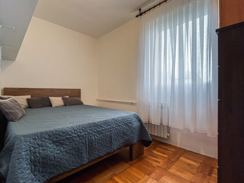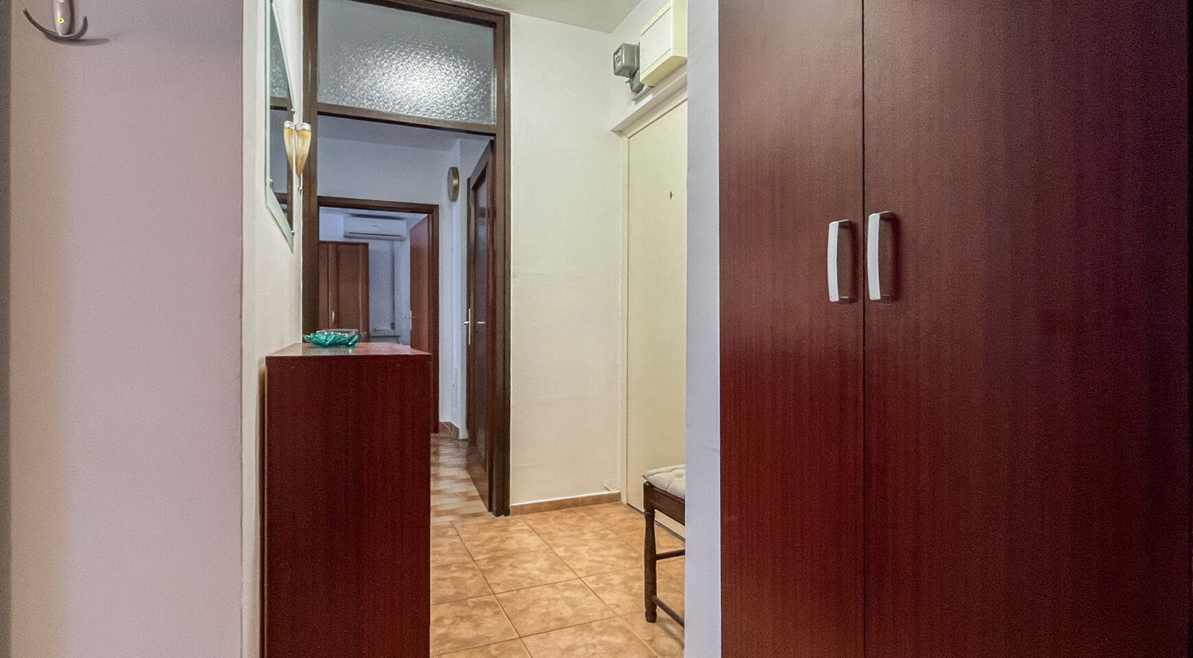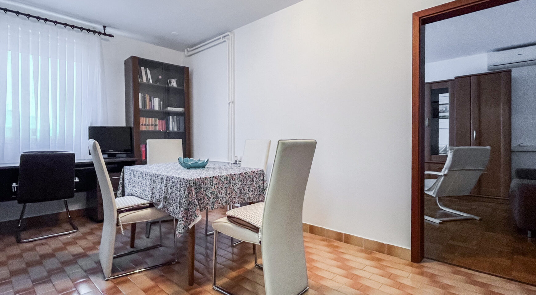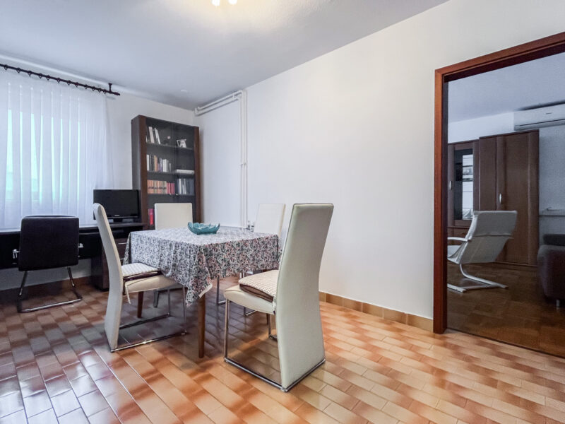 Stan je dobrog rasporeda, klimatiziran i svjetao, orijentiran je na istok. Površine je 54 m2, a sastoji se od ulaznog hodnika, kupaonice, spavaće sobe, prostranog dnevnog, kuhinje te velike blagovaonice.