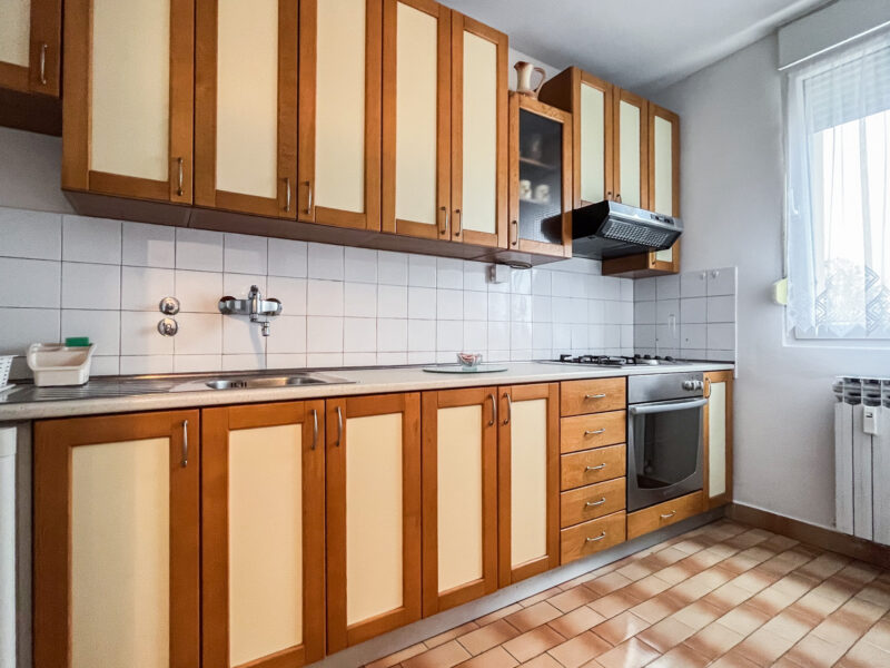 STAN JE ODMAH USELJIV! LOKACIJA: Dugave, Ulica sv. Mateja – u blizini se nalaze ljekarna, vrtići, škole, kafići, trgovine, restorani, tržnica, Avenua Mall, Bundek i sl. Odlična povezanost javnim prijevozom – autobusne stanice pokraj zgrade udaljene 190 m i 240 m, a nova tramvajska pruga se radi na Sarajevskoj cesti! Poželjan kvart zbog parkova i mnoštvo zelenih površina.