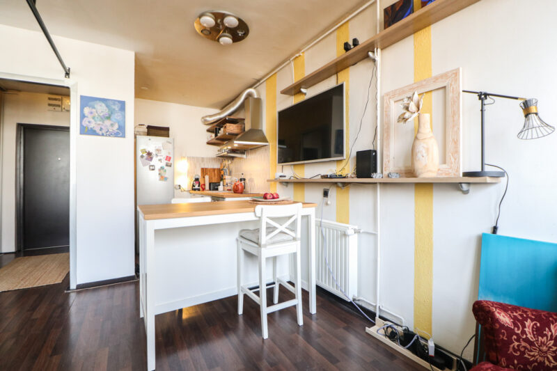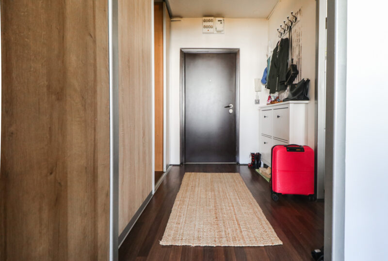 Površina stana je 34 m2, a sastoji se od hodnika, sobe, kuhinje s blagovaonicom te prostrane kupaonice koja je zgodno odvojena kliznim vratima.