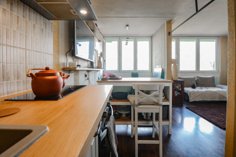 Na mjestu gdje je prethodno bio smješten balkon sada izdvojen stoji zgodan kutak za čitanje. Renovirani su kuhinja i kupaonica, novi otok u blagovaonskom dijelu te je stavljena nova stolarija kao i pločice i laminati. Sve je rađeno po mjeri kako bi se maksimalno iskoristio prostor.
