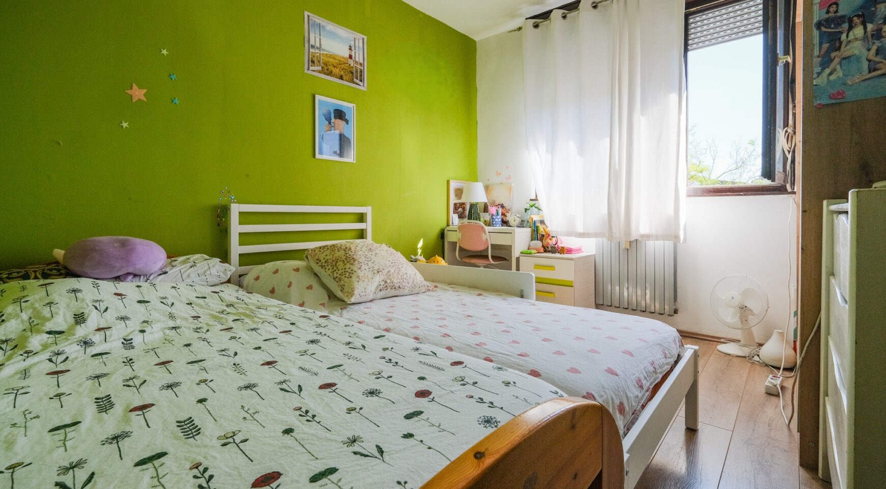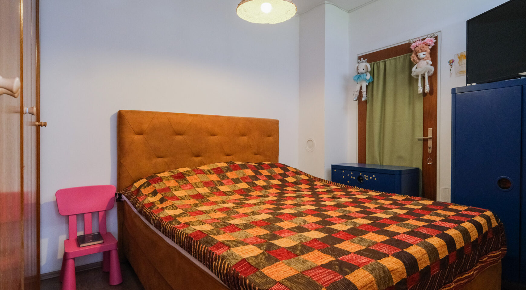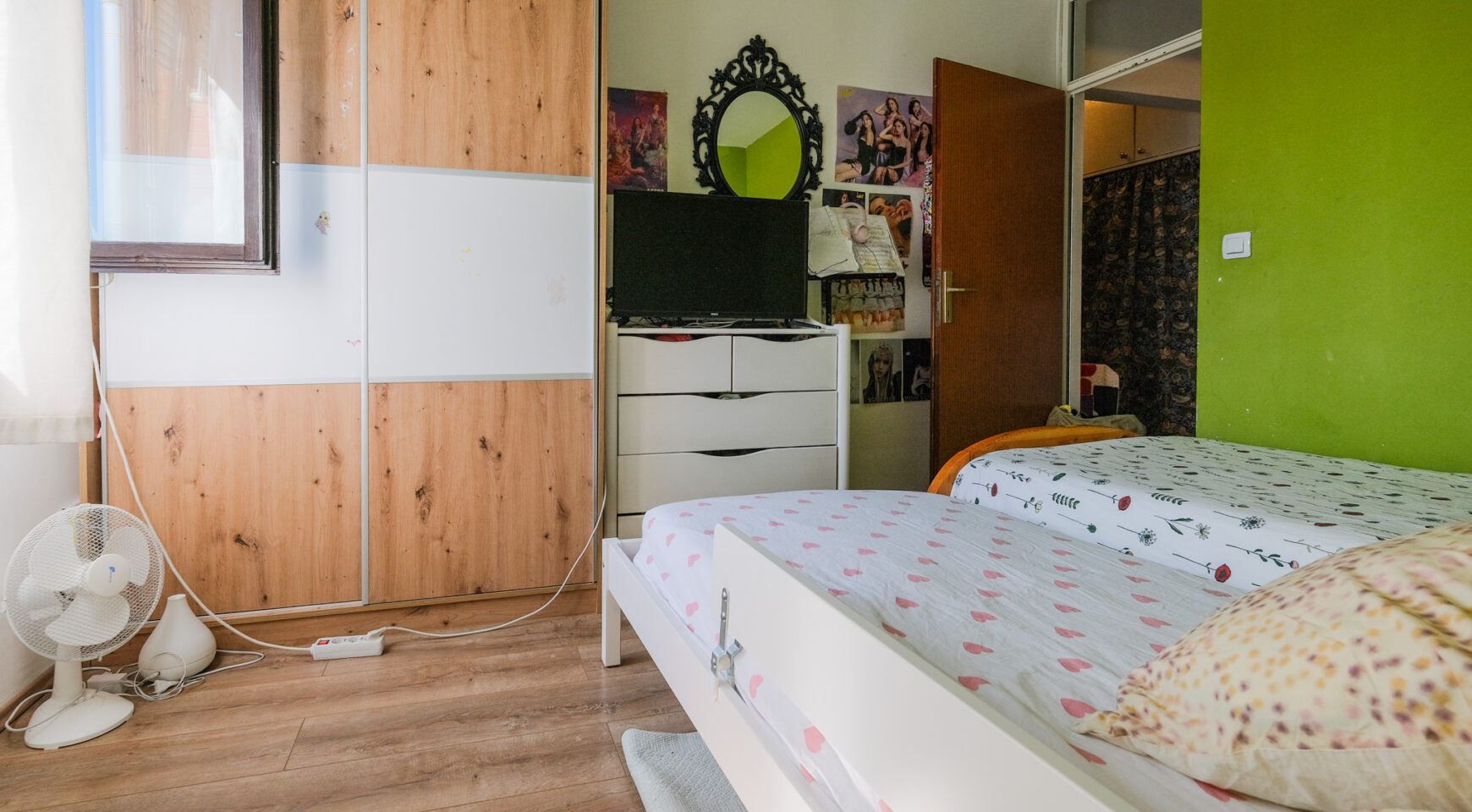 S obzirom na pregrađen dio dnevnog boravka, dobivena je još jedna spavaća soba (bez prozora, ali s dovoljno svjetlosti).