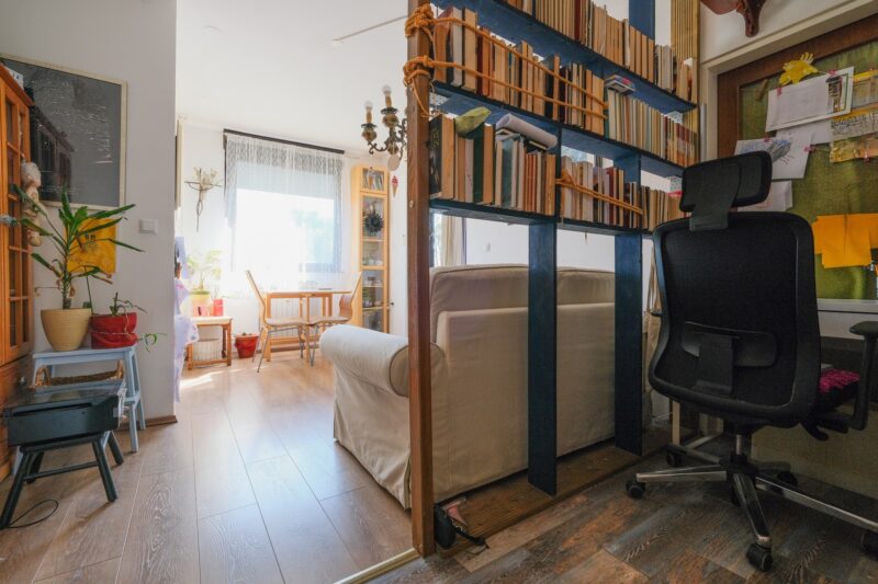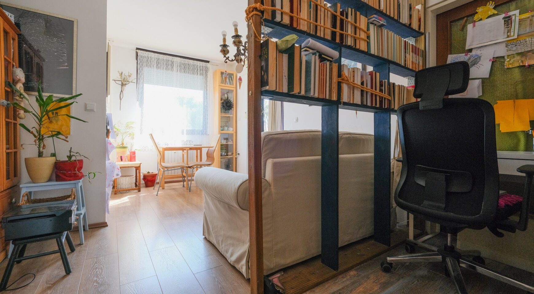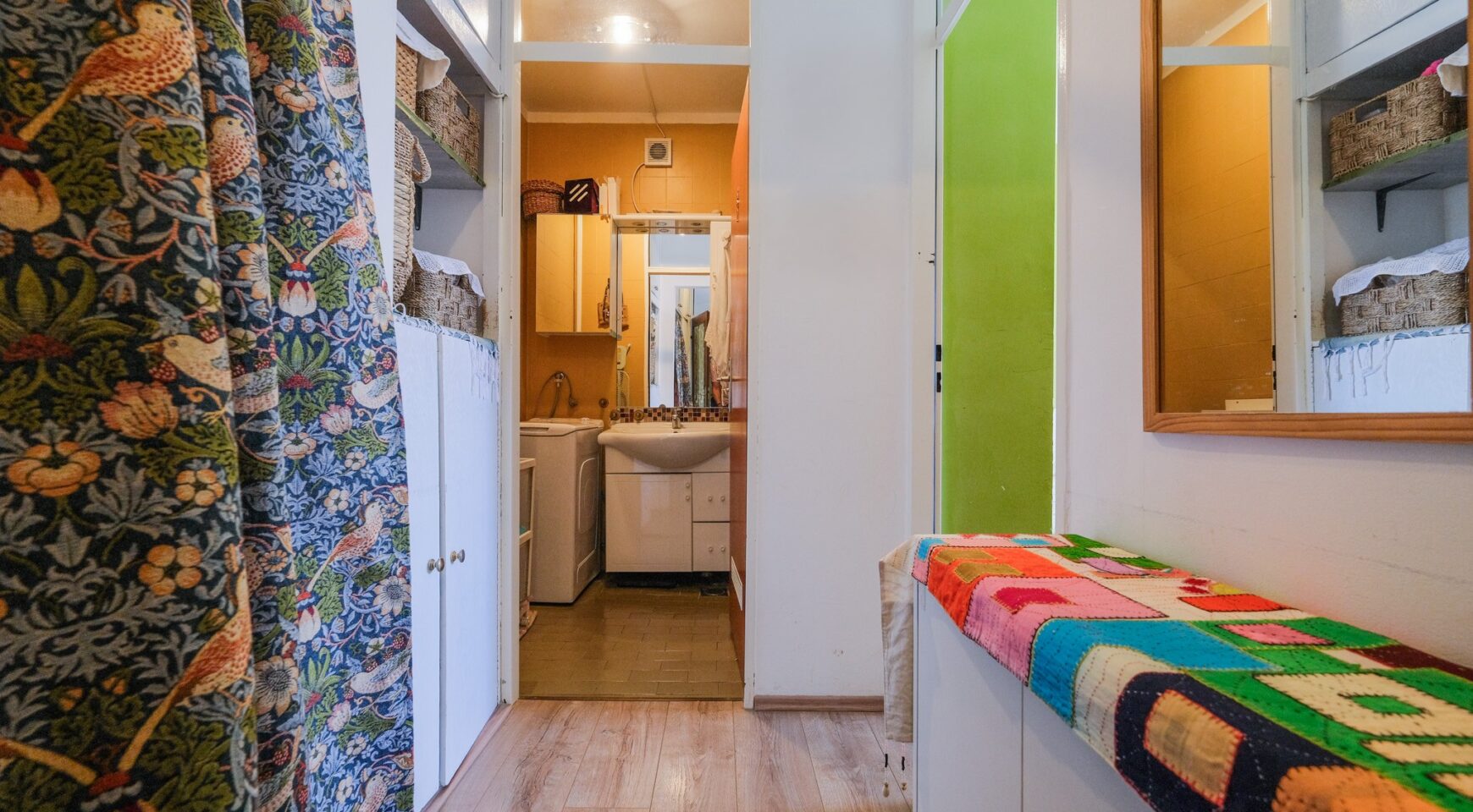 S obzirom na pregrađen dio dnevnog boravka, dobivena je još jedna spavaća soba (bez prozora, ali s dovoljno svjetlosti).