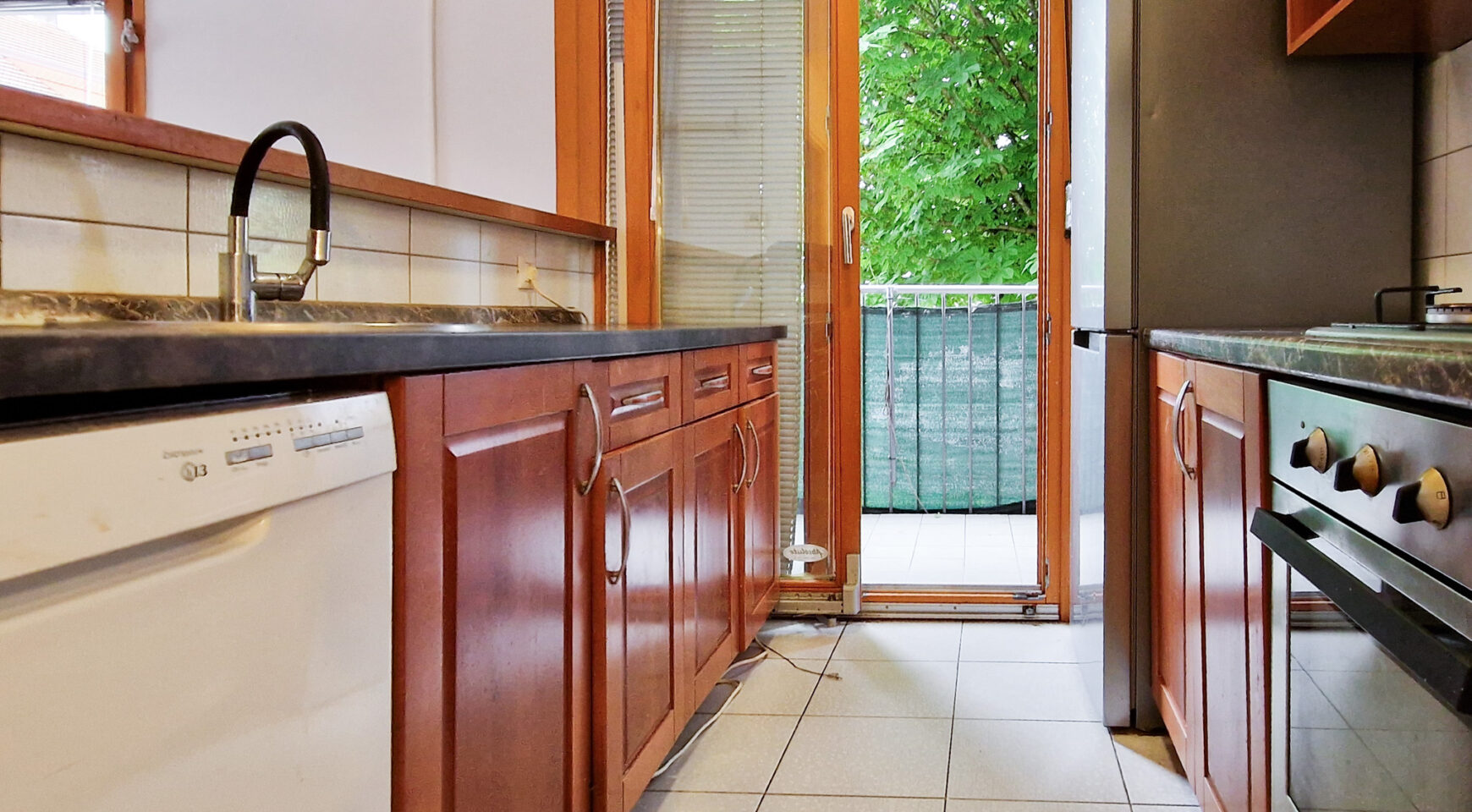 Stan je opremljen štednjakom na plin, napom, pećnicom, perilicom posuđa, hladnjakom, perilicom rublja, sušilicom i klima uređajem. Ugrađena su protuprovalna vrata, PVC stolarija.