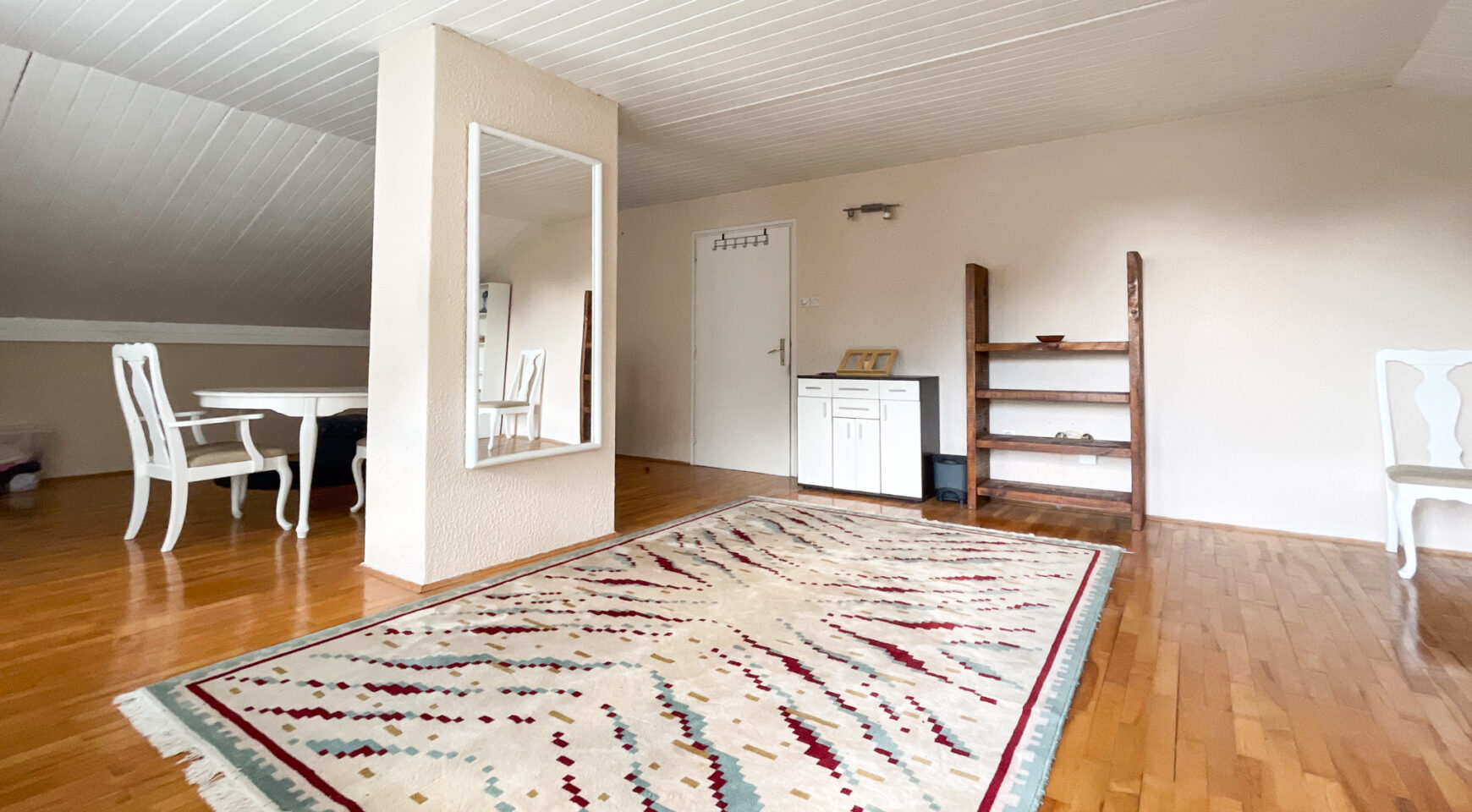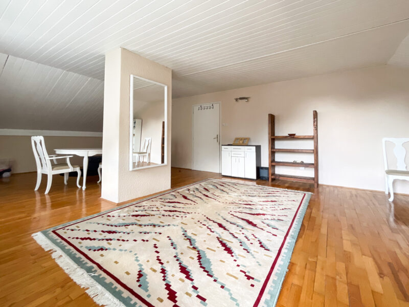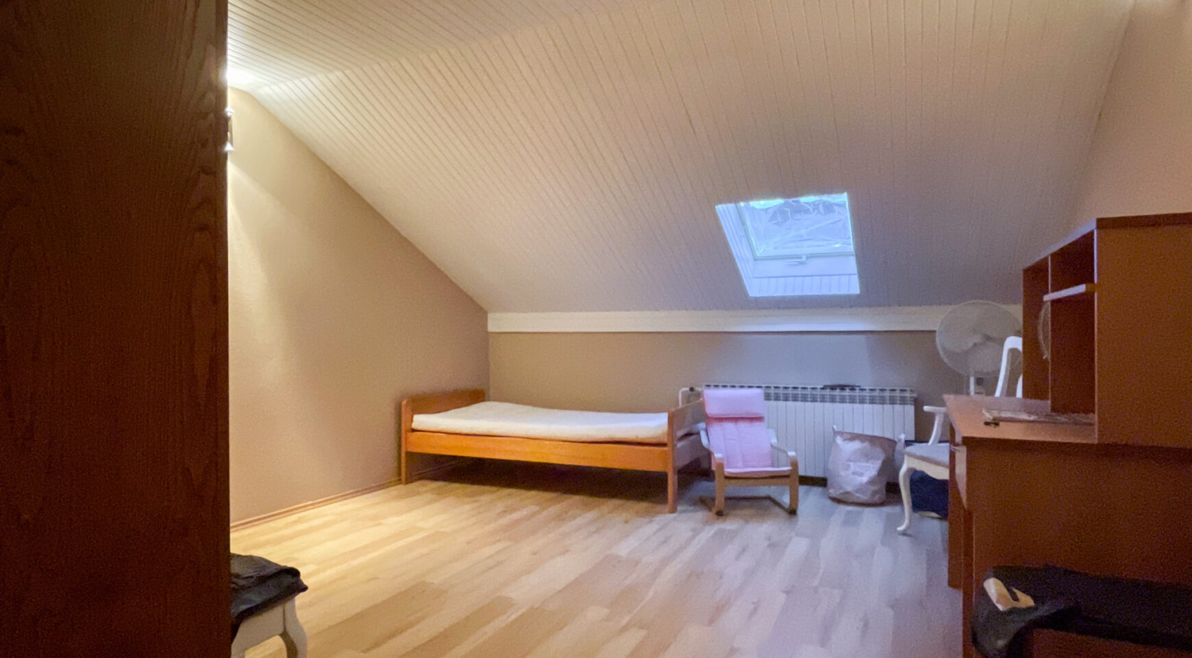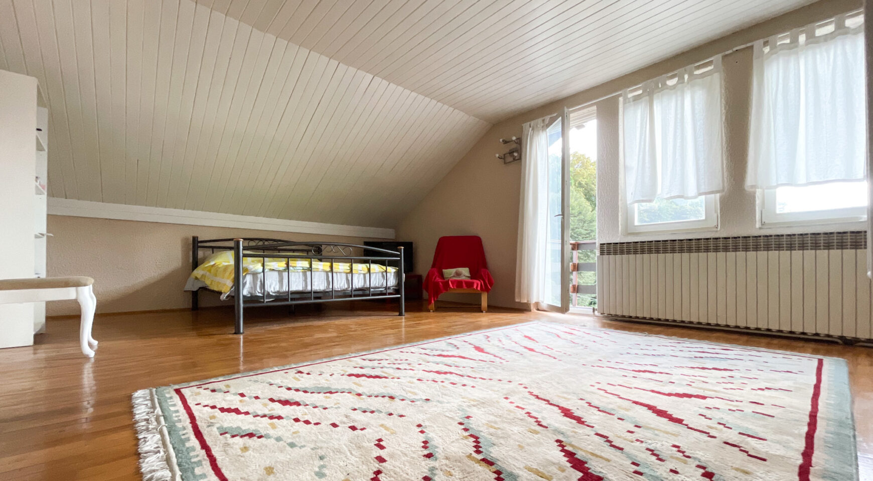 Potkrovlje: hodnik(stepenice), kuhinja, blagovaonica, 2 spavaće sobe i balkon.