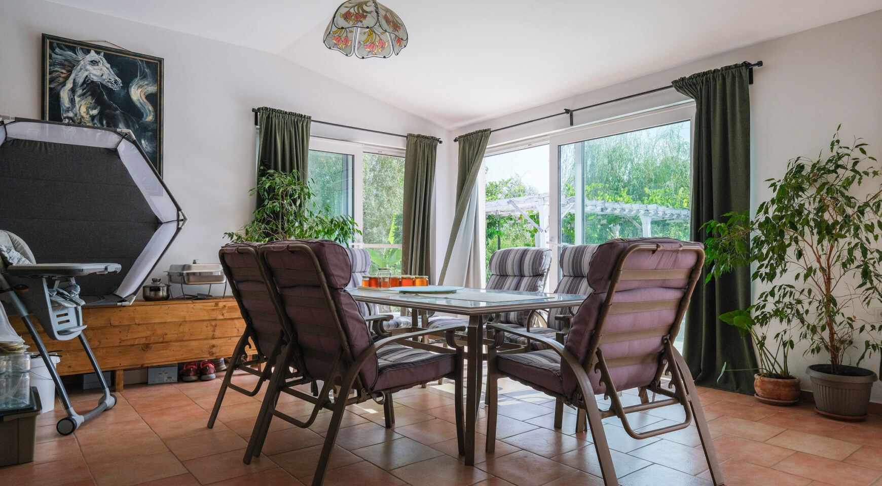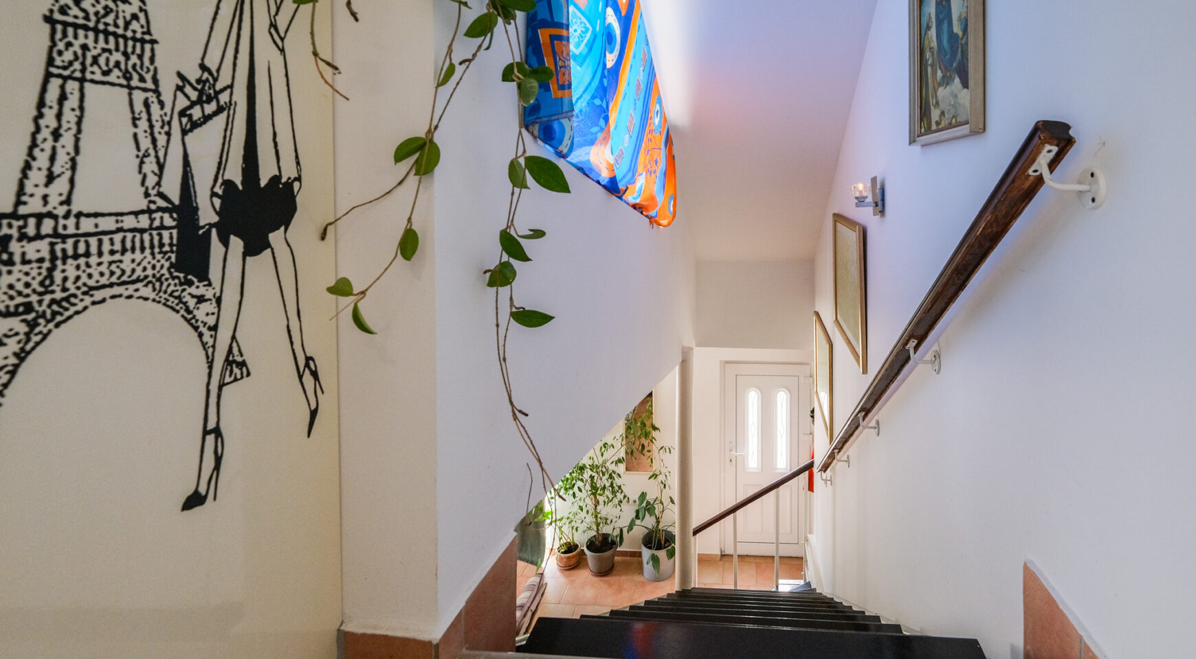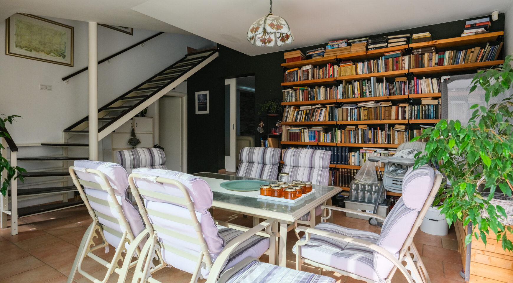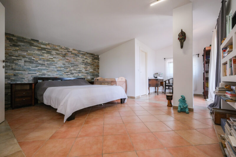 Prizemlje: open-space s blagovaonicom, kuhinjom, dnevni boravak koji krasi kamin, te radni kutak. Dvije spavaće sobe s vlastitim kupaonicama (jedna i s vešerajem), izlaz na natkrivenu terasu i bazen; zimski vrt s bibliotekom. Kat: spavaća soba s garderobom, kupaonica i privatna kućna teretana.