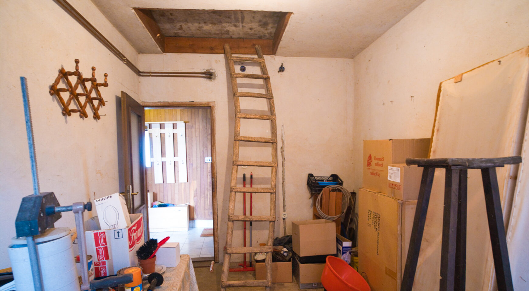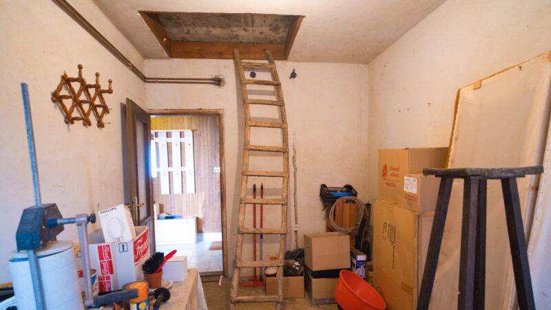 Prizemlje se sastoji od tri povezane prostorije površine 50,5 m2, 65,7 m2 i 36 m2, svaka ima zaseban ulaz iz dvorišta. Ove prostorije se mogu koristiti na više načina: garaža, radionica, staja za životinje, skladište, konoba i sl.