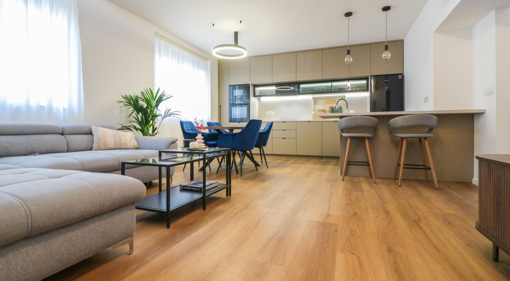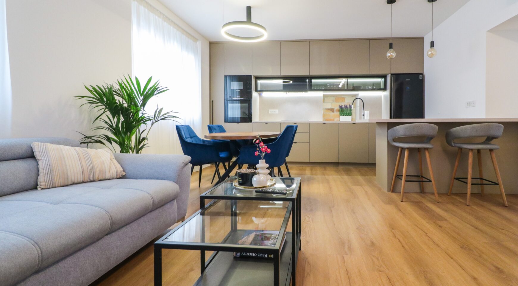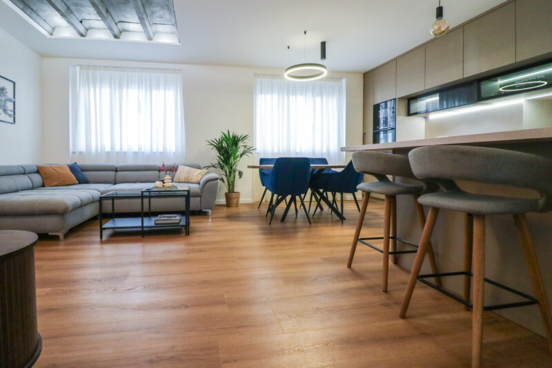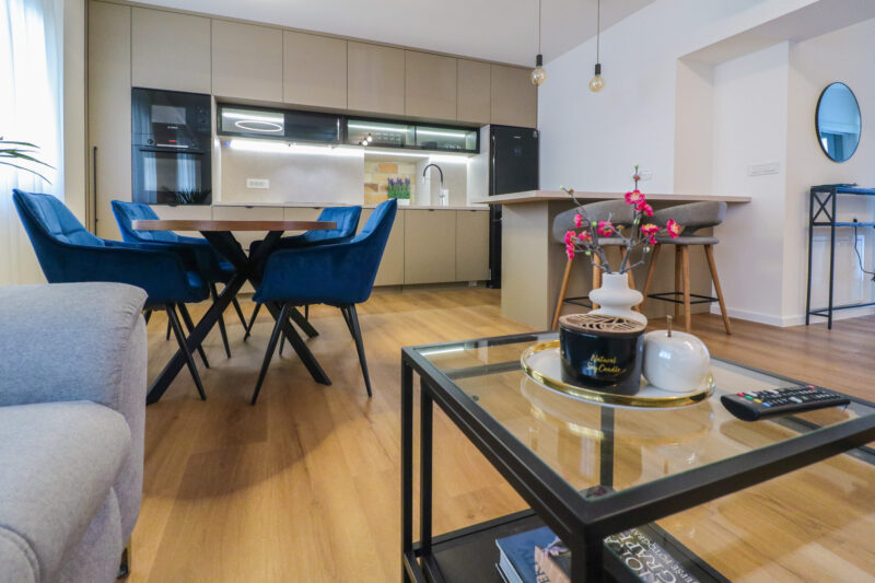Stan je kompletno novoadaptiran i opremljen prema visokim standardima, a riječ je o PRVOM NAJMU – sve u stanu je novo, nekorišteno i pažljivo odabrano. Prostor odiše elegancijom i kvalitetom, s naglaskom na detalje, rasvjetu i funkcionalnost.