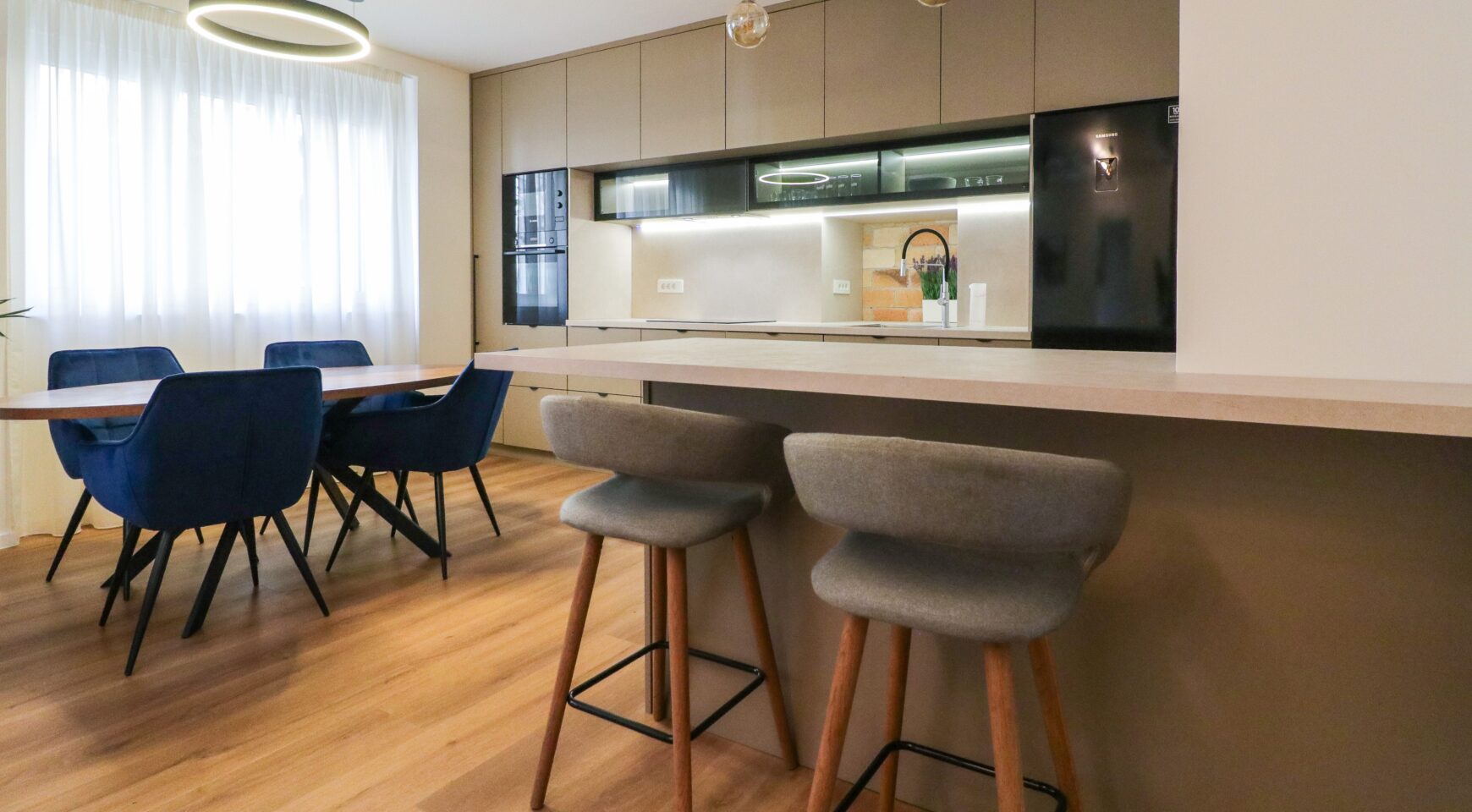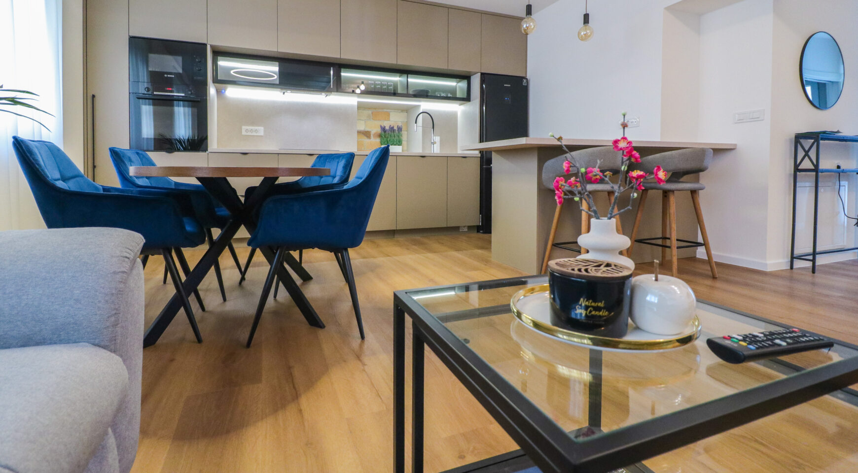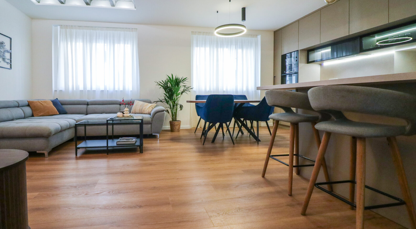 Stan je kompletno novoadaptiran i opremljen prema visokim standardima, a riječ je o PRVOM NAJMU – sve u stanu je novo, nekorišteno i pažljivo odabrano. Prostor odiše elegancijom i kvalitetom, s naglaskom na detalje, rasvjetu i funkcionalnost.