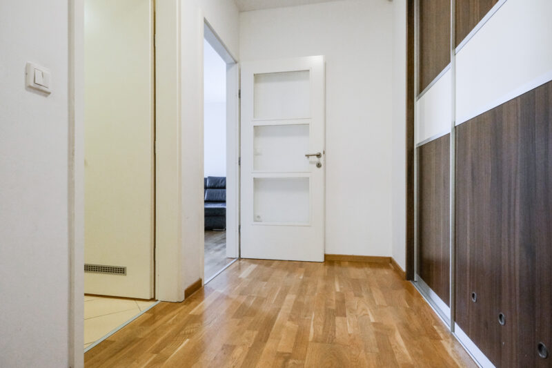 Iznajmljuje se lijep i iznimno dobro održavan 2-soban stan ukupne površine 68 m² (stambeno 52,14 m² + garaža 15,86 m²), smješten na 7. katu uredne zgrade novije gradnje s liftom.