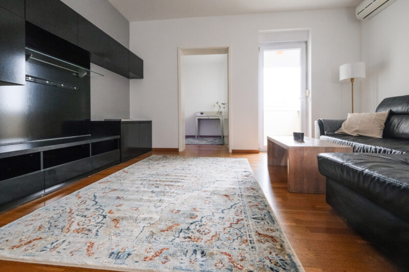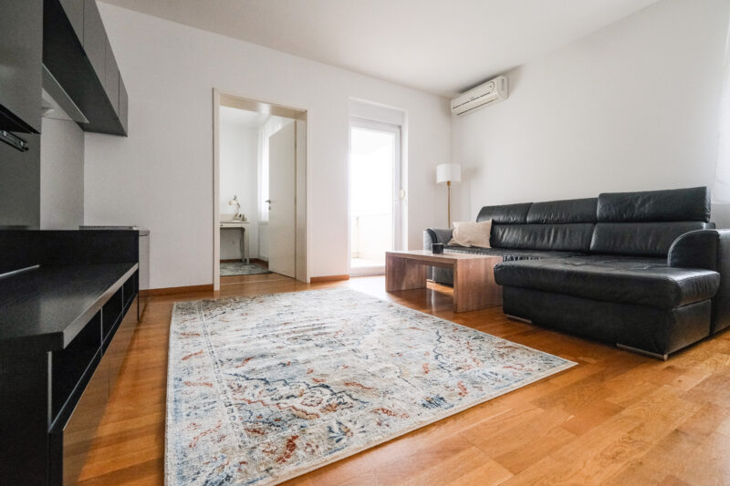 Stan je kompletno namješten i uredan, opremljen klima uređajem, etažnim plinskim centralnim grijanjem, protuprovalnim vratima te svim potrebnim sadržajima za ugodan svakodnevni život.