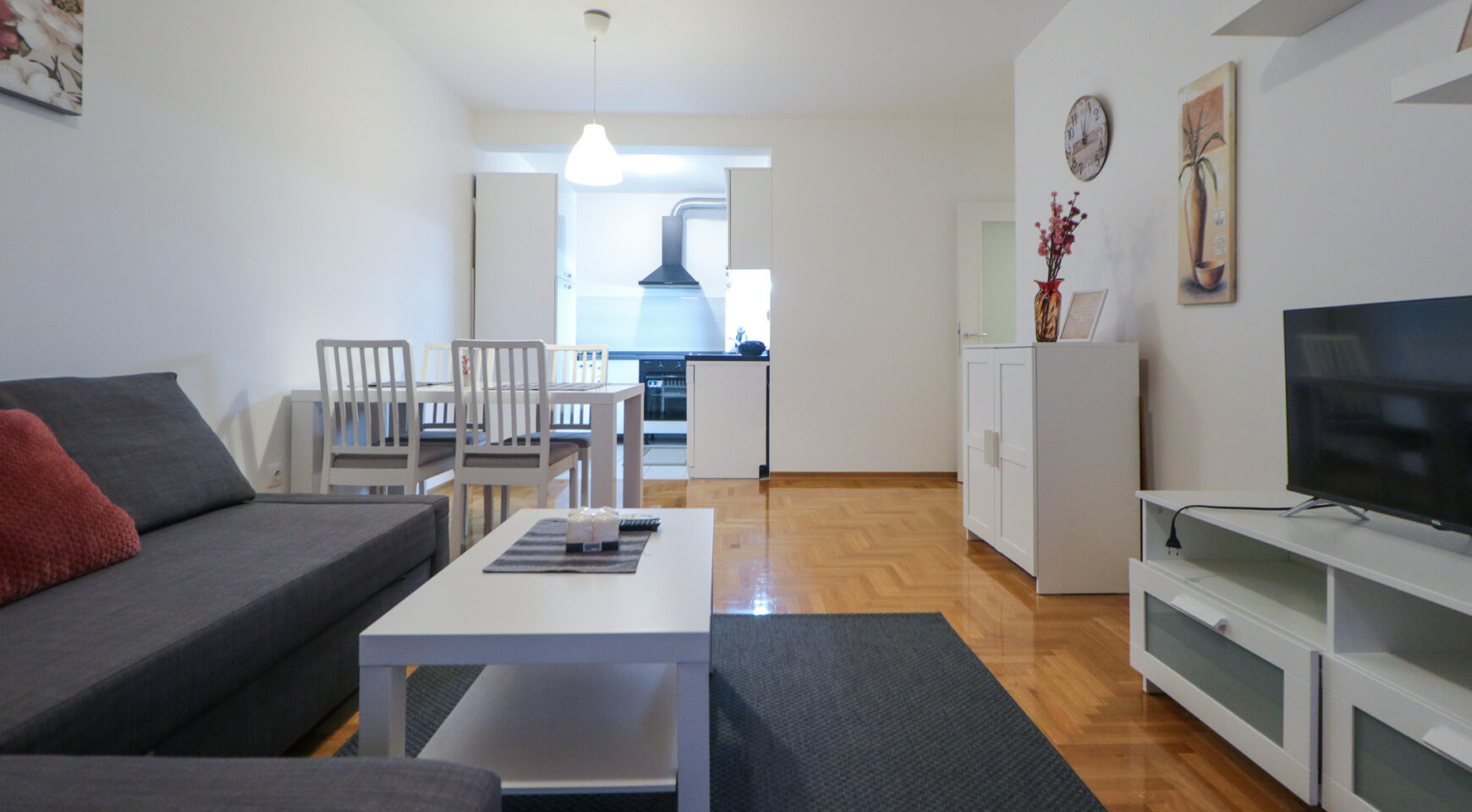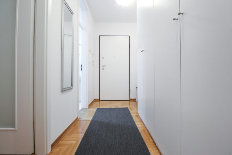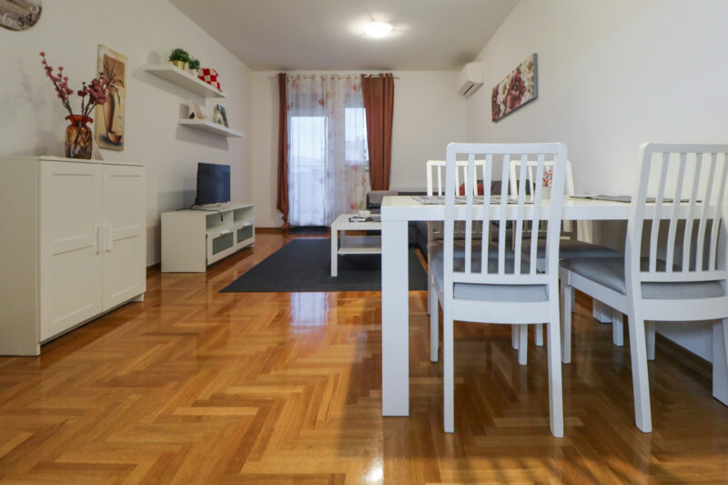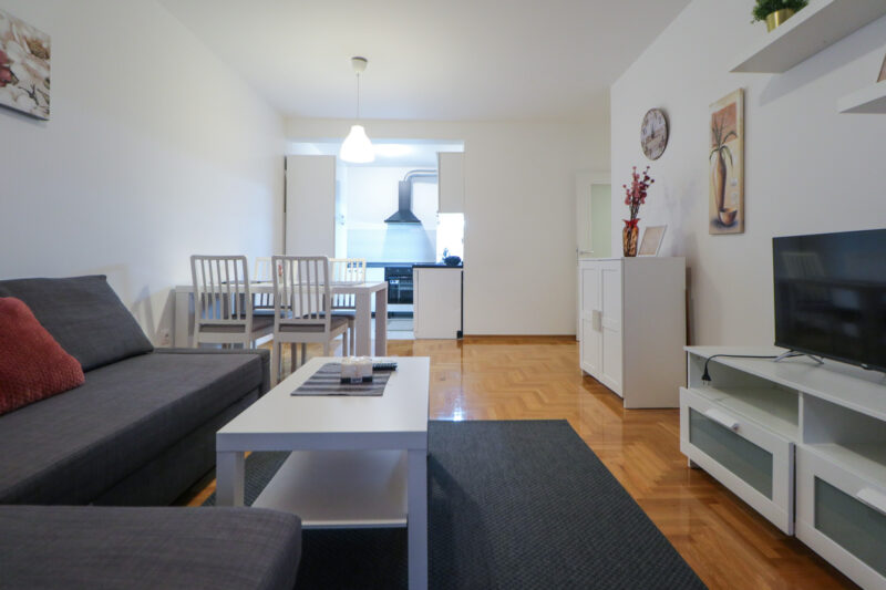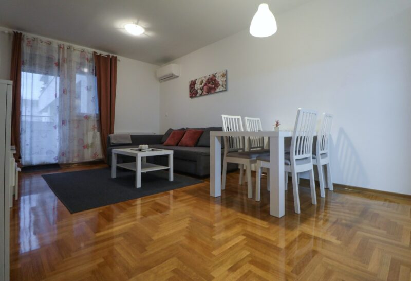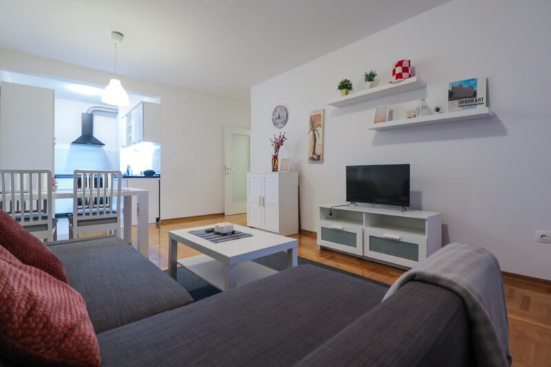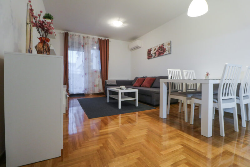 Stan ima površinu od 52,36 m2, a sastoji se od ulaznog hodnika, prostranog dnevnog boravka s blagovaonicom, izdvojene lijepe kuhinje, spavaće sobe, kupaonice te velike lođe. Potpuno je namješten i opremljen je klima uređajem u dnevnom boravku, protuprovalnim vratima, PVC stolarijom, ormarima, perilicom suđa, perilicom rublja, TV-om, pećnicom, hladnjakom sa zamrzivačem, indukcijskom pločom, mikrovalnom pećnicom, portafonom i sl.