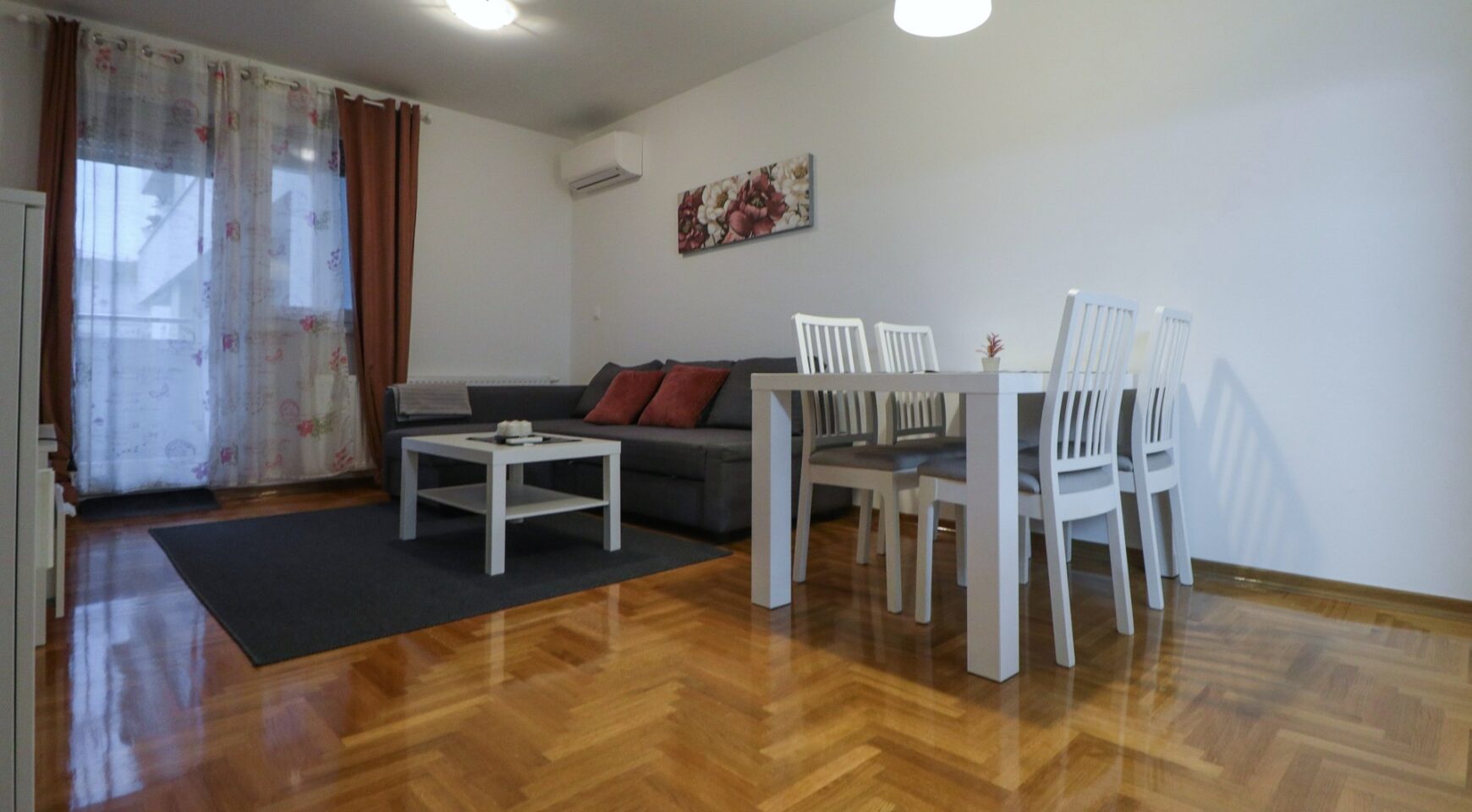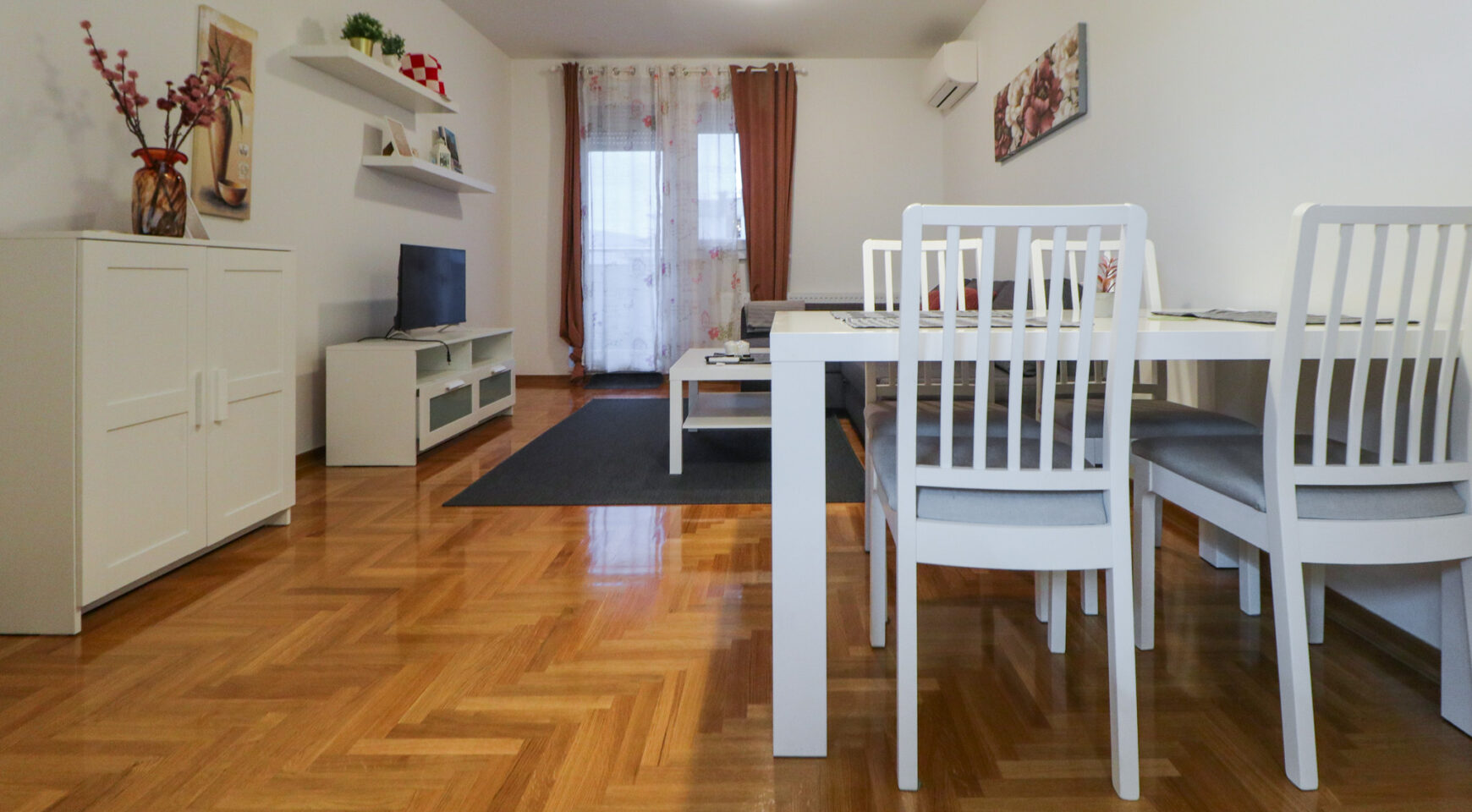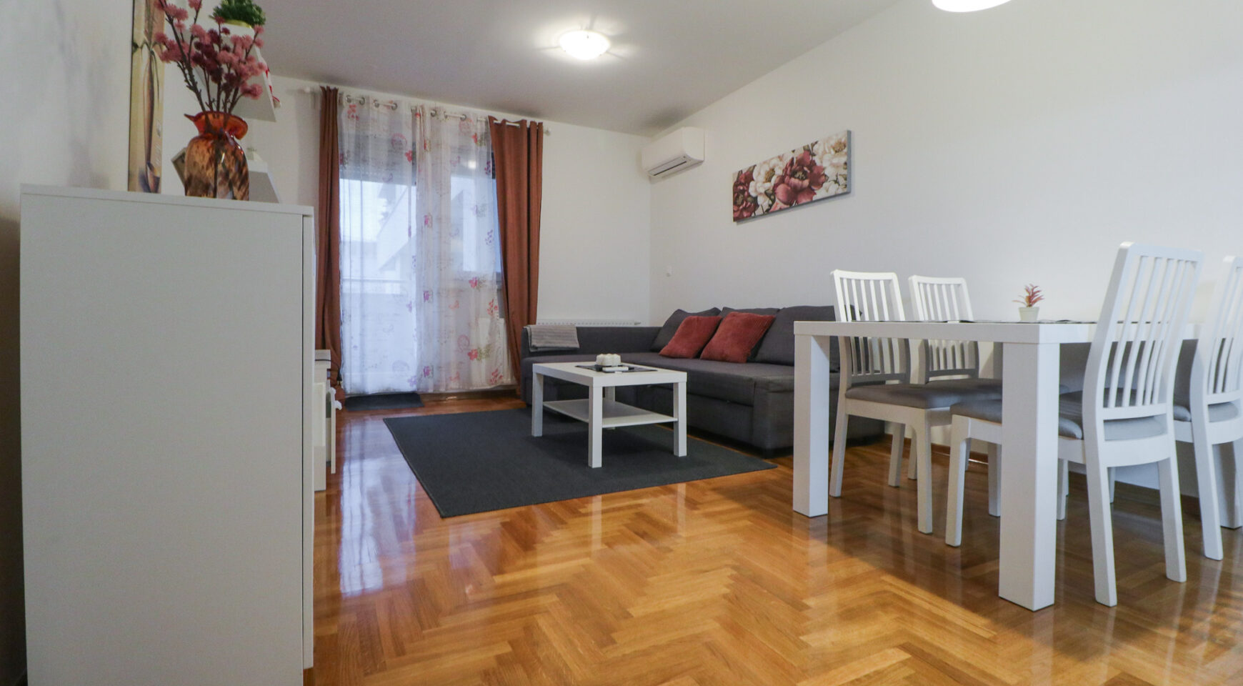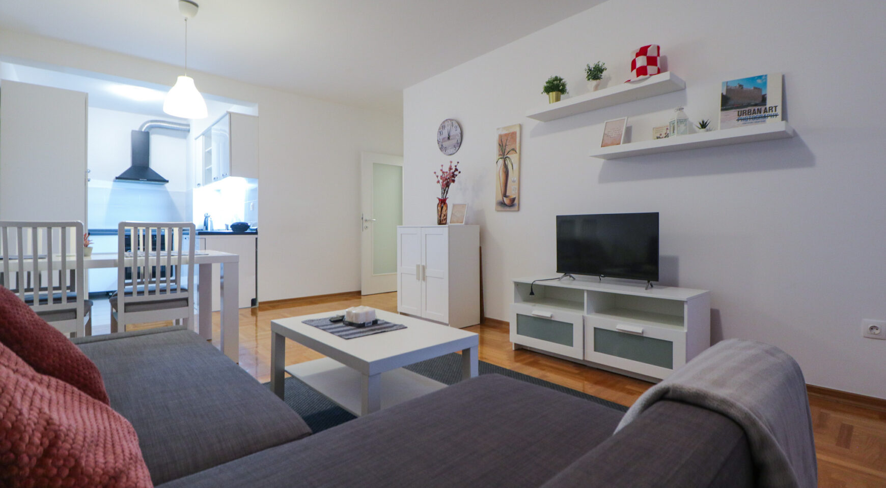 Stan ima površinu od 52,36 m2, a sastoji se od ulaznog hodnika, prostranog dnevnog boravka s blagovaonicom, izdvojene lijepe kuhinje, spavaće sobe, kupaonice te velike lođe. Potpuno je namješten i opremljen je klima uređajem u dnevnom boravku, protuprovalnim vratima, PVC stolarijom, ormarima, perilicom suđa, perilicom rublja, TV-om, pećnicom, hladnjakom sa zamrzivačem, indukcijskom pločom, mikrovalnom pećnicom, portafonom i sl.