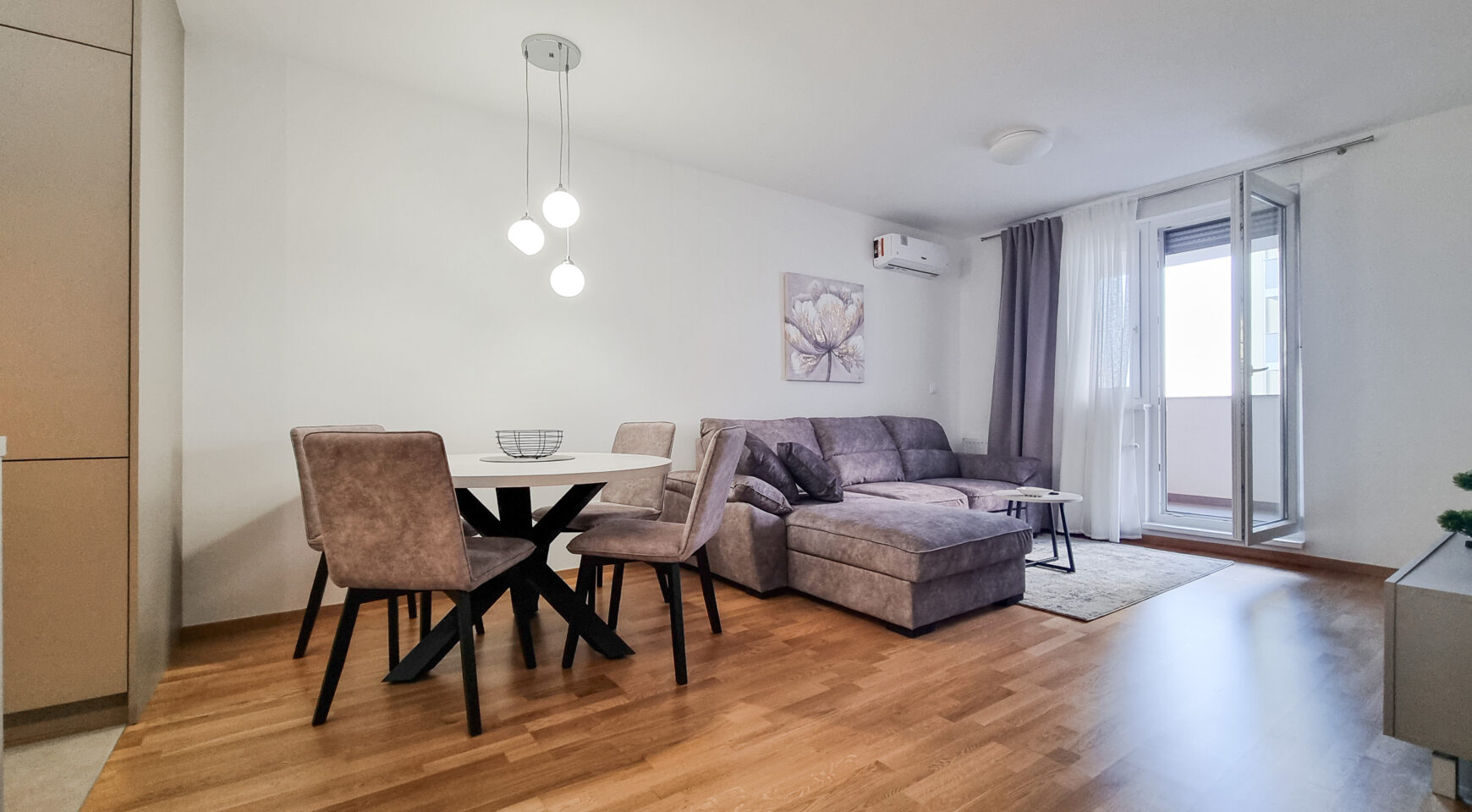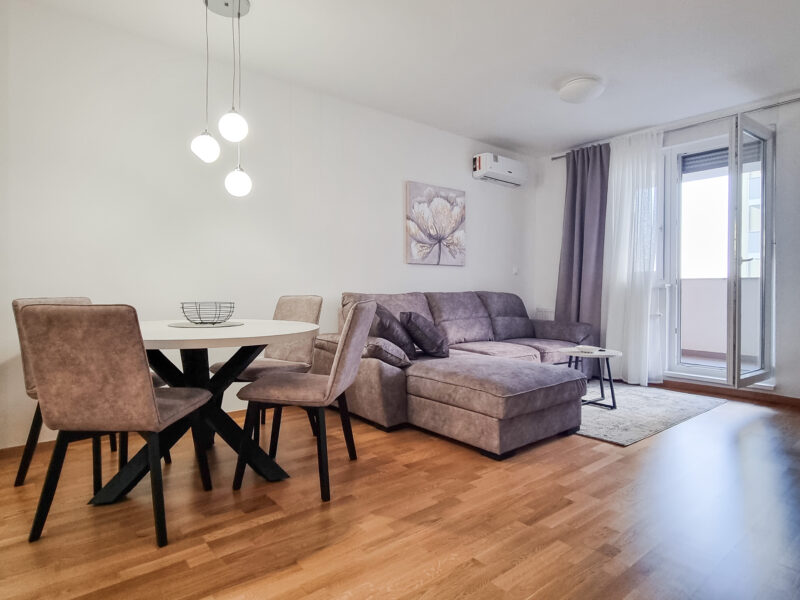 Sastoji se od ulaznog hodnika, kupaonice, prostranog dnevnog boravka s blagovaonicom, izdvojene kuhinje rađene po mjeri, spavaće sobe te lođe.