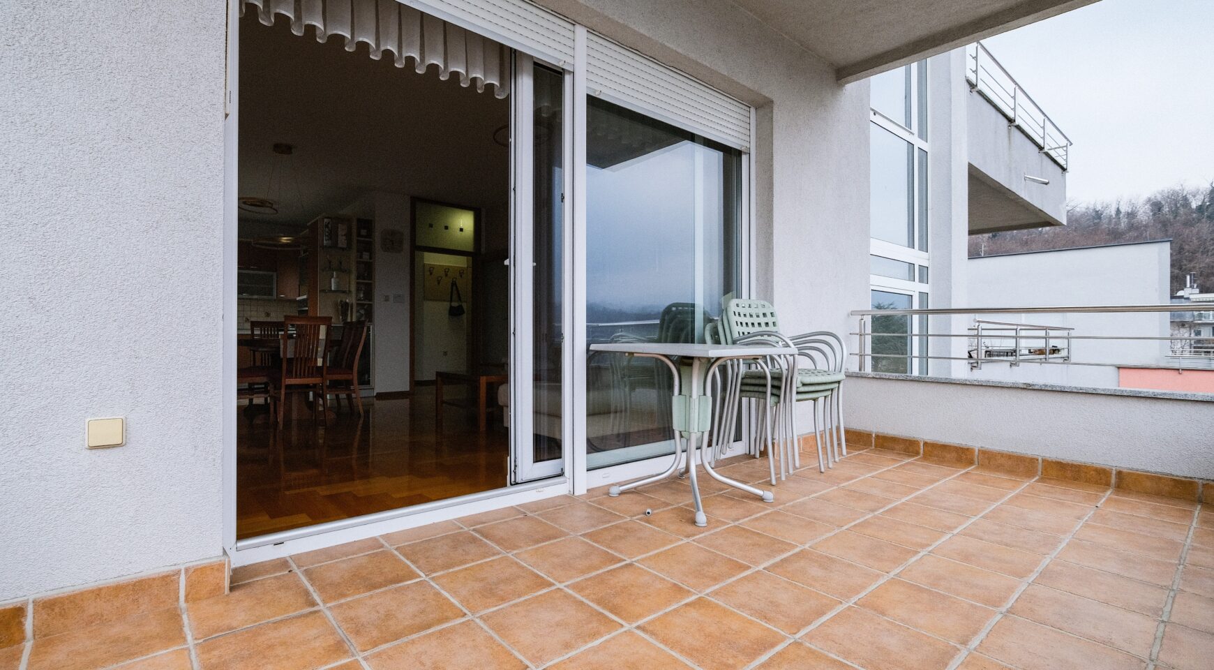Posebna vrijednost ove nekretnine je činjenica da svaka soba ima izlaz na vlastitu terasu, dok se najveća terasa proteže uz dnevni boravak i kuhinju, stvarajući iznimno ugodan prostor za boravak i opuštanje. Stan je vrlo svijetao, uredan i ostavlja izvrstan dojam, a prostor je pažljivo održavan kroz godine.