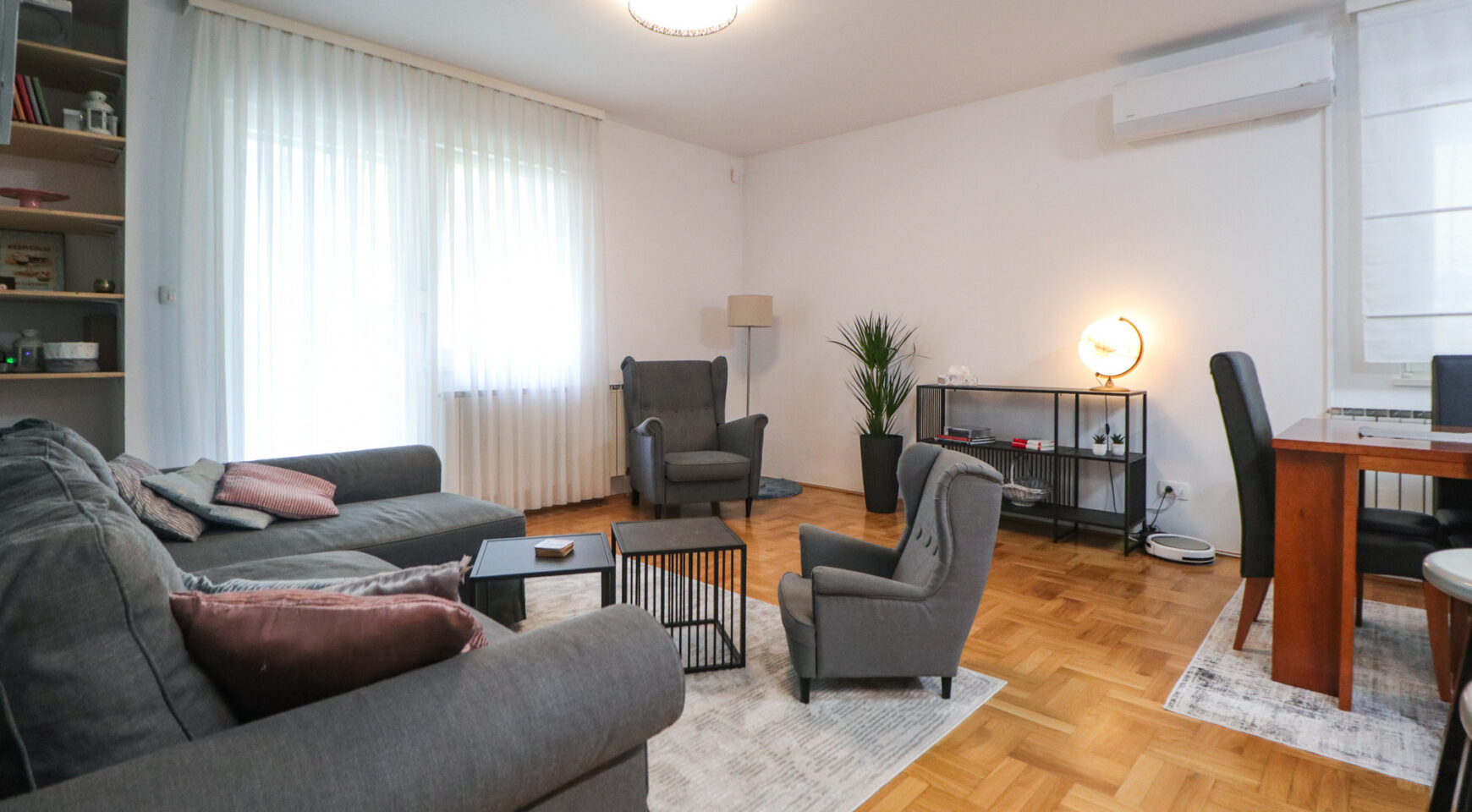 Iznajmljuje se prekrasan 3-soban stan u visokom prizemlju manje zgrade/urbane vile u Mlinovima. Velik je, svjetao i uredan, vlasnici su ga opremali za sebe.