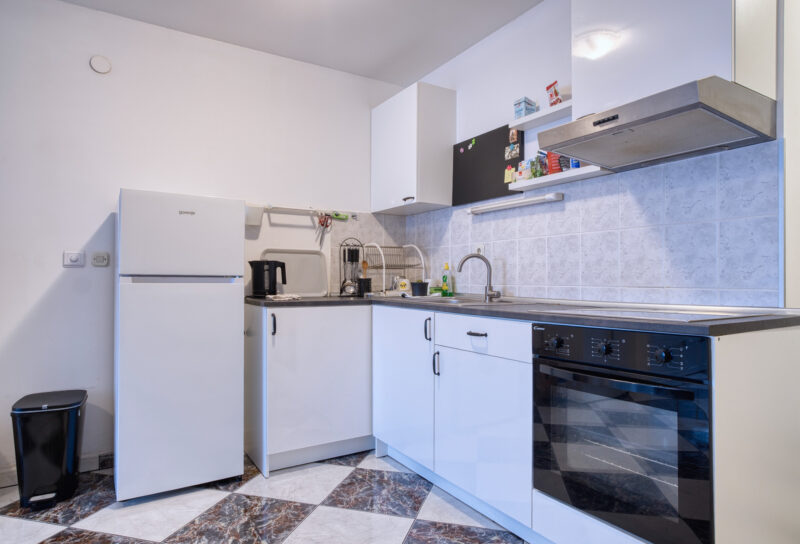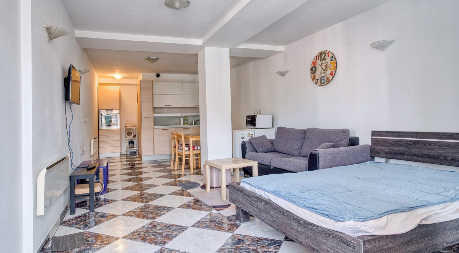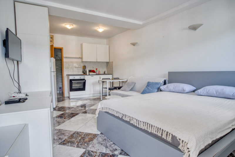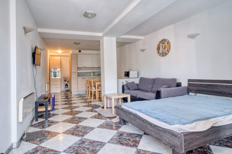 Svaka garsonijera ima tlocrt otvorenog tipa (spavaća zona, boravak i kuhinja) i kupaonicu s tušem i WC-om.