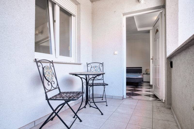 Jedna od garsonijera ima ulaz iz stubišta zgrade, a druge dvije – sa zajedničke vanjske terase.