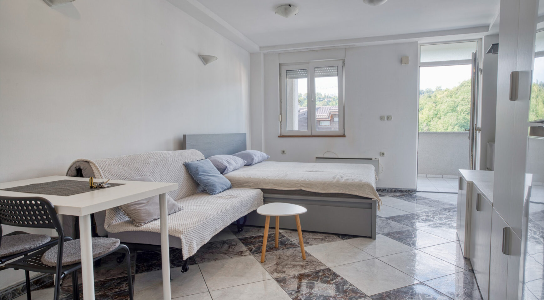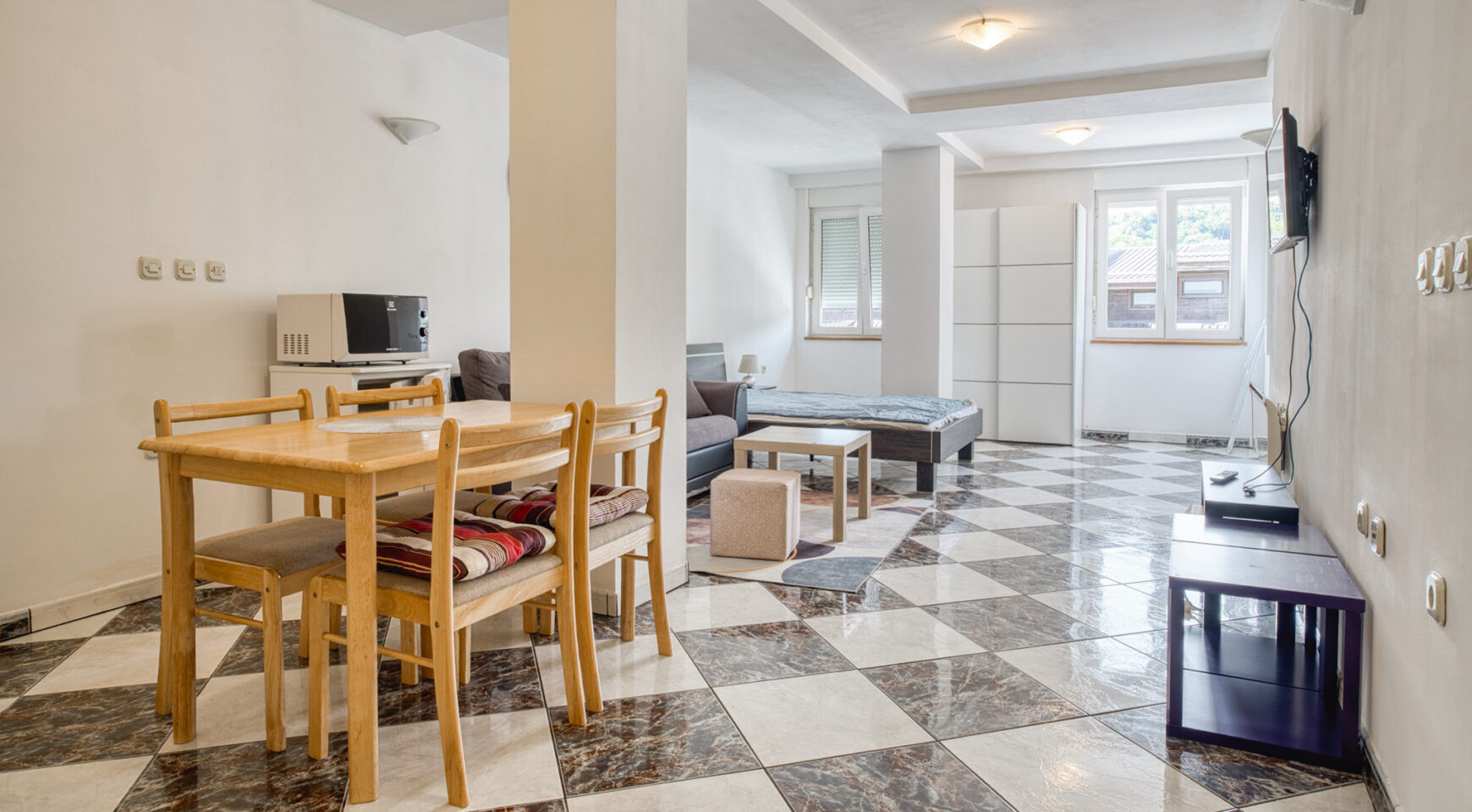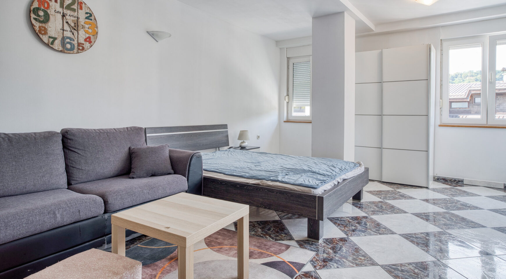 Prodaje se veliki stan ukupne površine 113 m2, koji podijeljen na tri garsonijere za iznajmljivanje. Stan je renoviran 2022. godine.