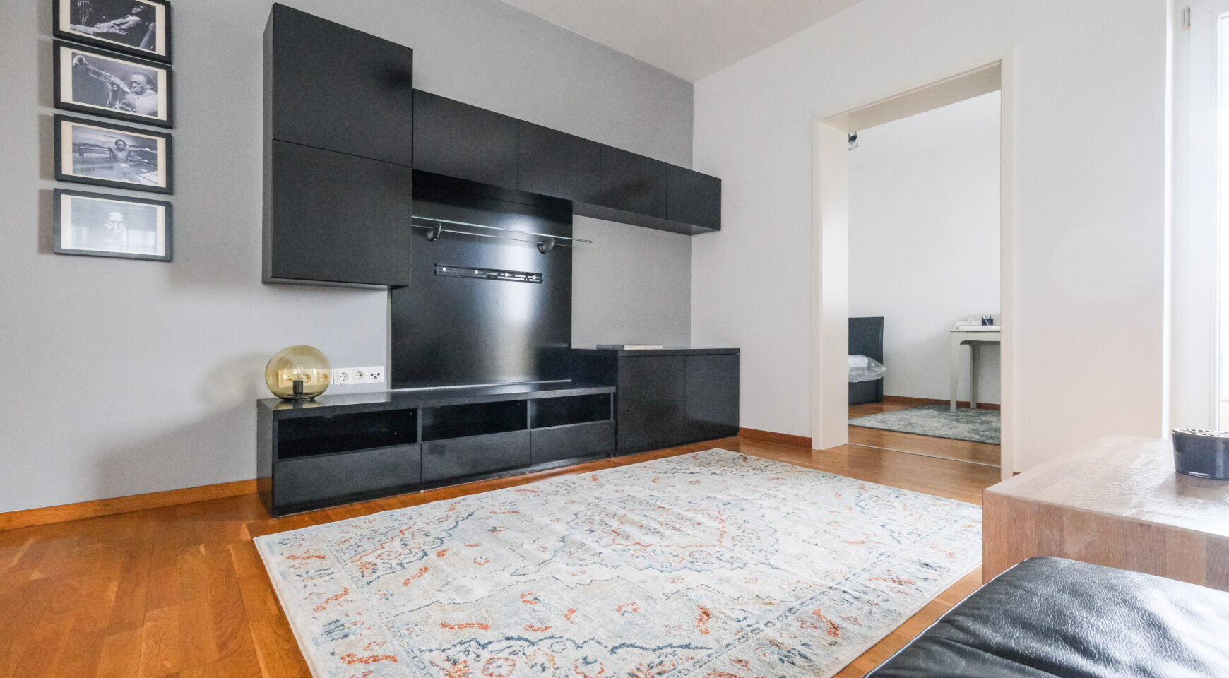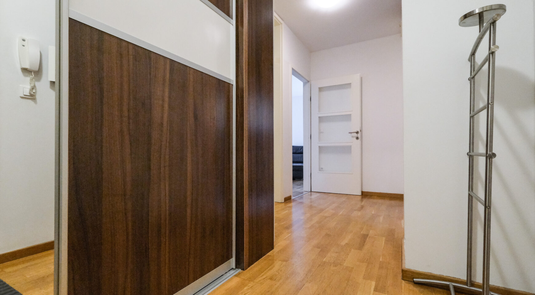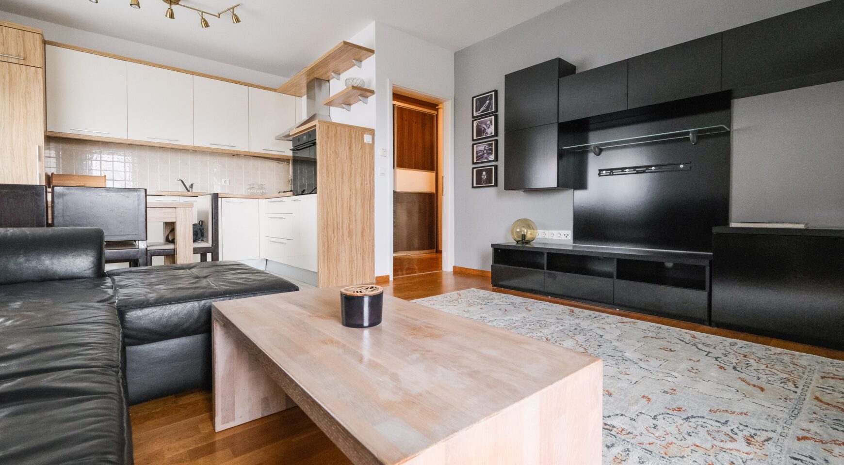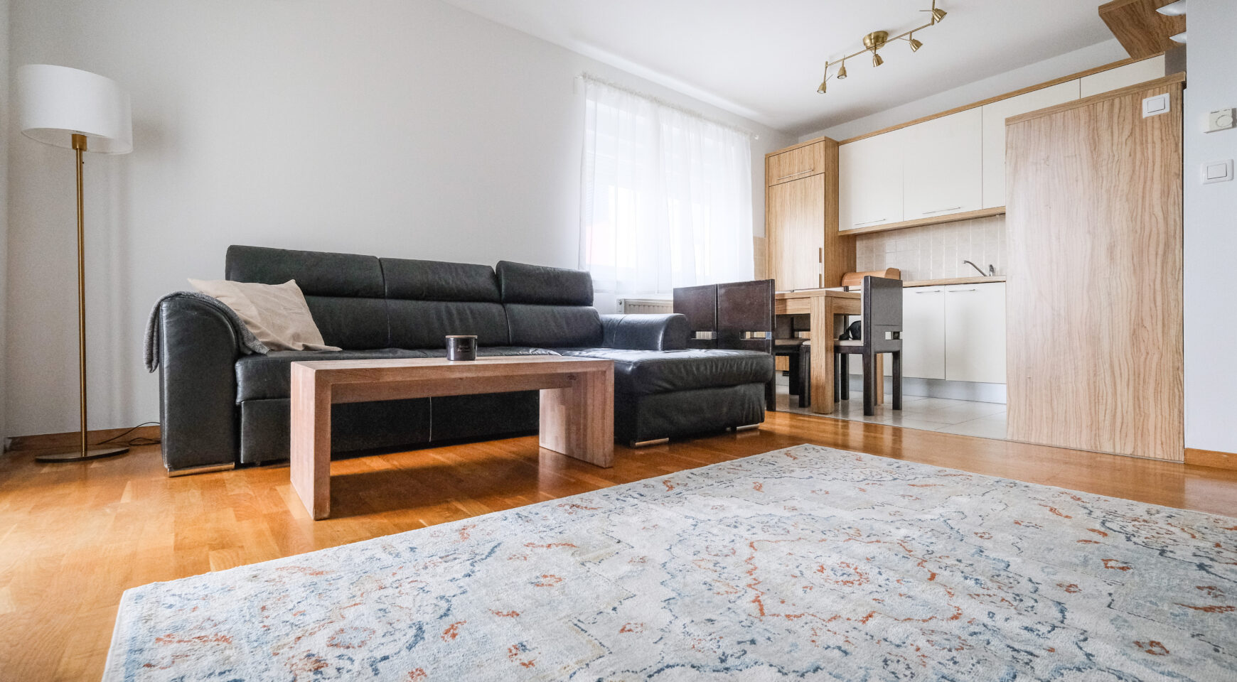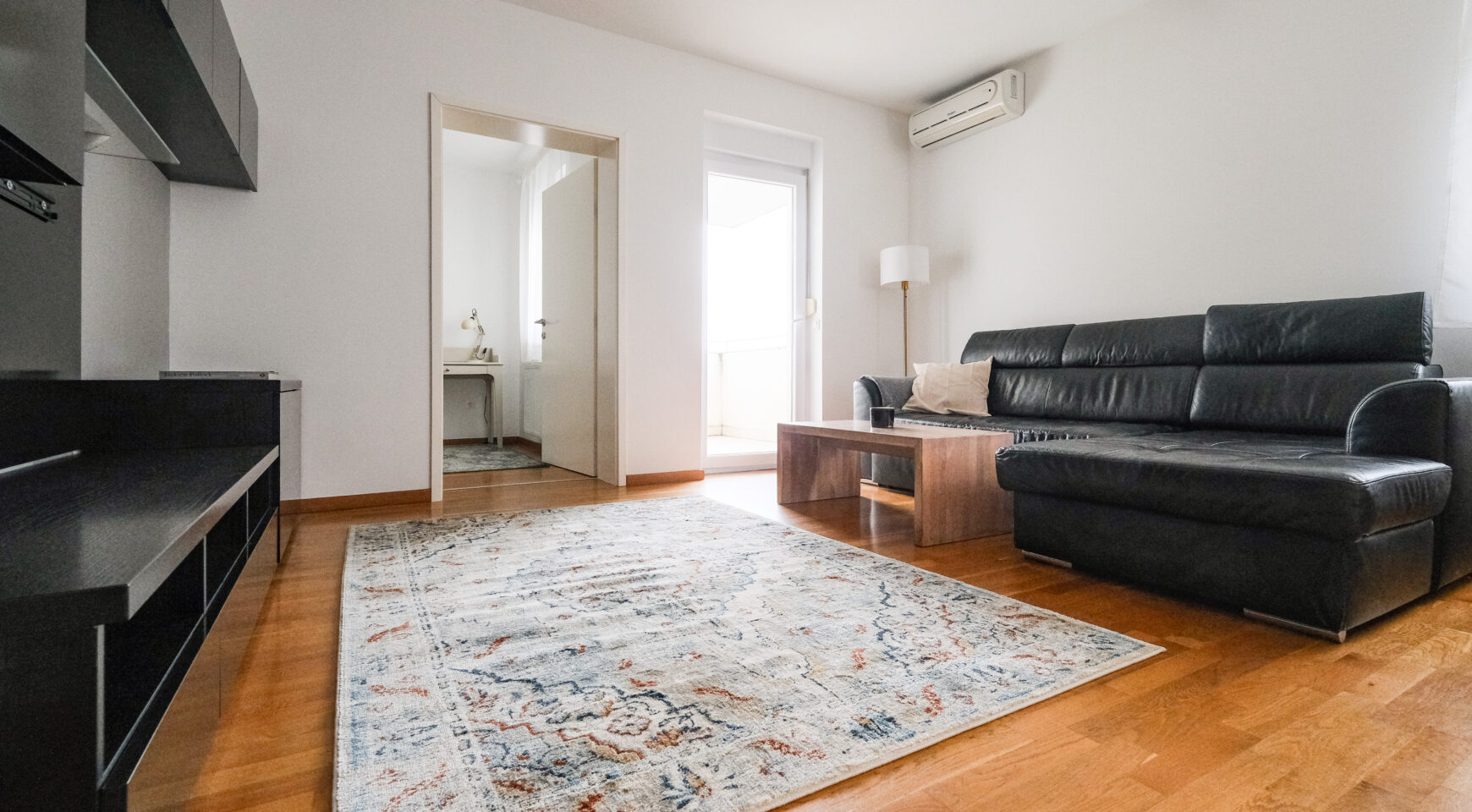 Stan je vrlo ugodan, svijetao i funkcionalnog rasporeda – sastoji se od ulaznog hodnika s ugradbenim ormarima, dnevnog boravka povezanog s kuhinjom i blagovaonskim dijelom, spavaće sobe, kupaonice te balkona s otvorenim pogledom. Južna orijentacija osigurava obilje prirodnog svjetla tijekom cijelog dana.