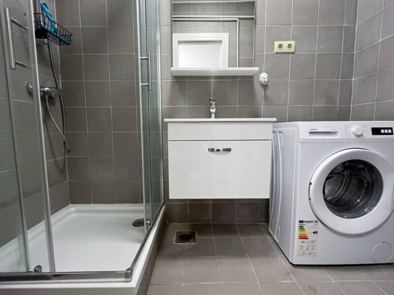 Stan je idealan za 1-2 osobe. Opremljen je protuprovalnim vratima, PVC stolarijom, perilicom veša, frižderom sa zamrzivačem, pećnicom, mikrovalnom pećnicom, štednjakom, napom i sl.