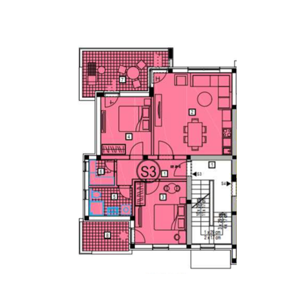 • Zidovi između apartmana i stubišta također od armiranog betona, toplinski i zvučno izolirani