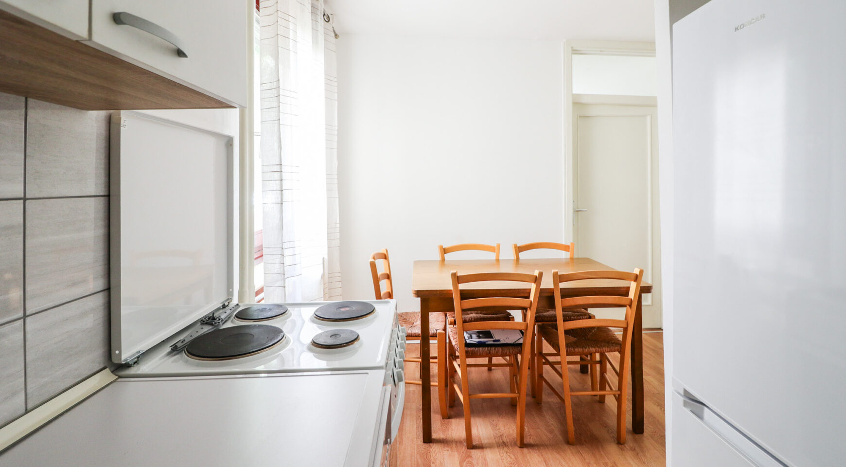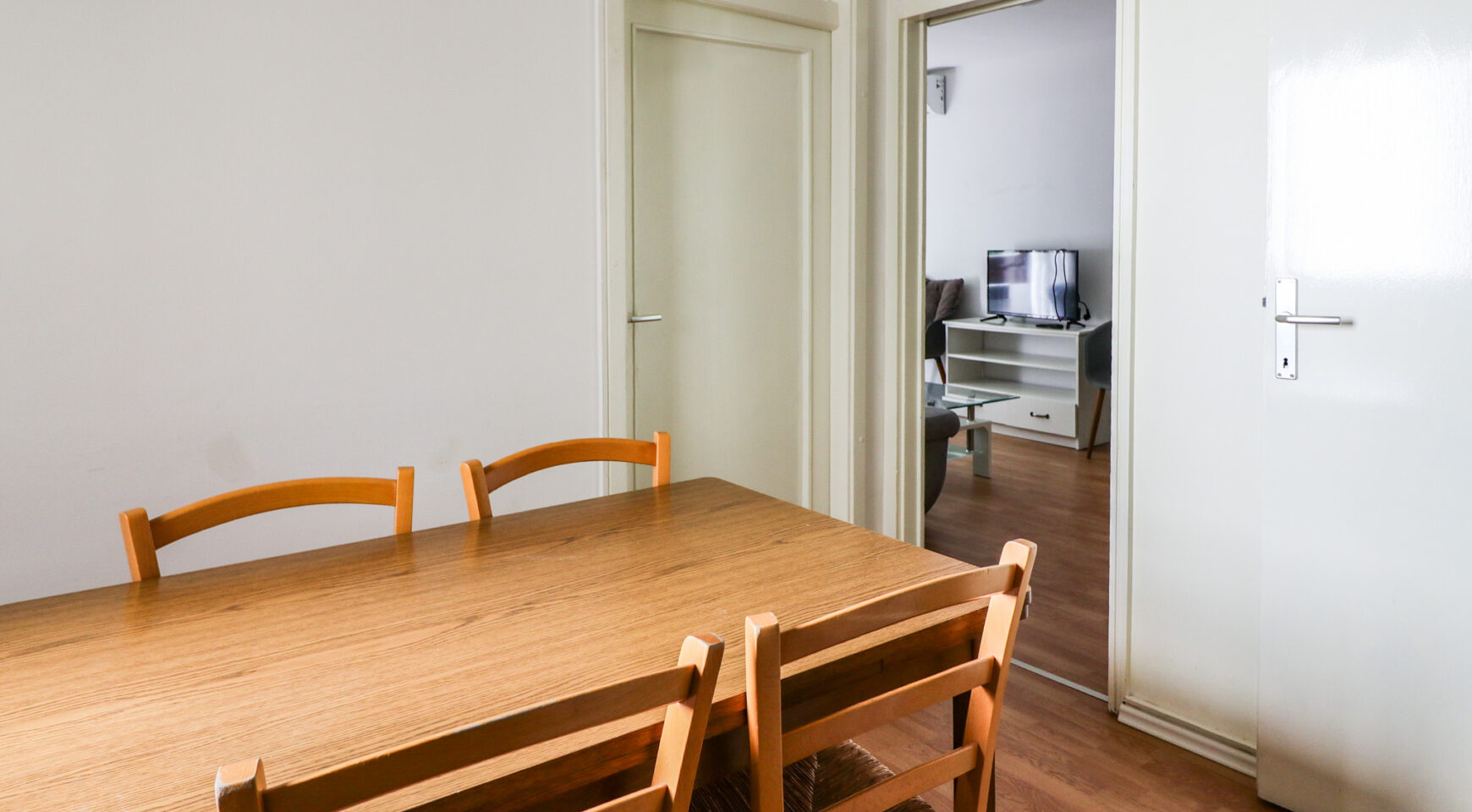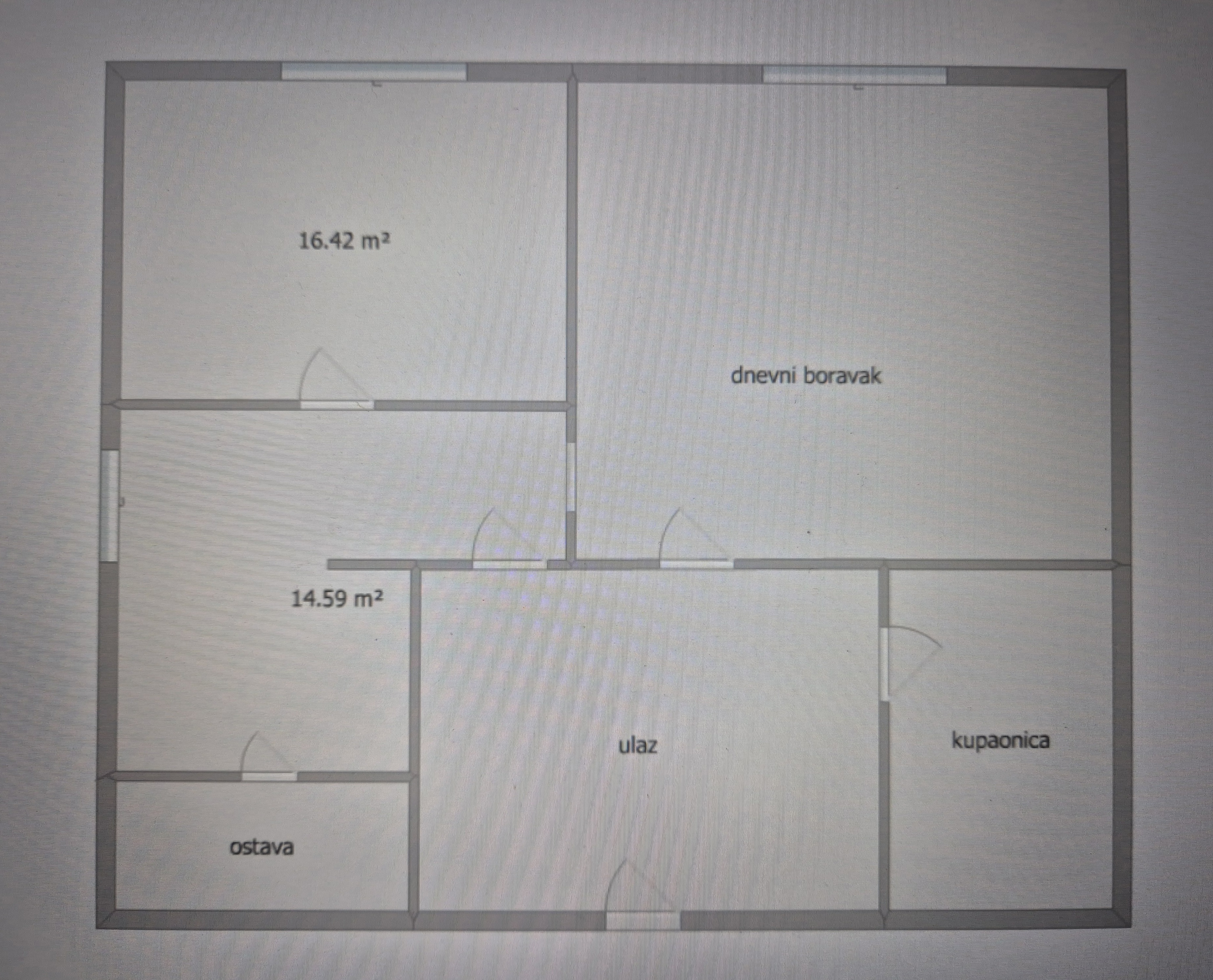 Stan ima dobar tlocrt i istočne je orijentacije. Površina mu iznosi 46m2 i odličnog je rasporeda s odvojenom kuhinjom i blagovaonom, a sastoji se od ulaznog hodnika, kuhinje i blagovaonice, dnevnog boravka, spavaće sobe, kupaonice i ostave u sklopu kuhinje. Tlocrt se nalazi u privitku.