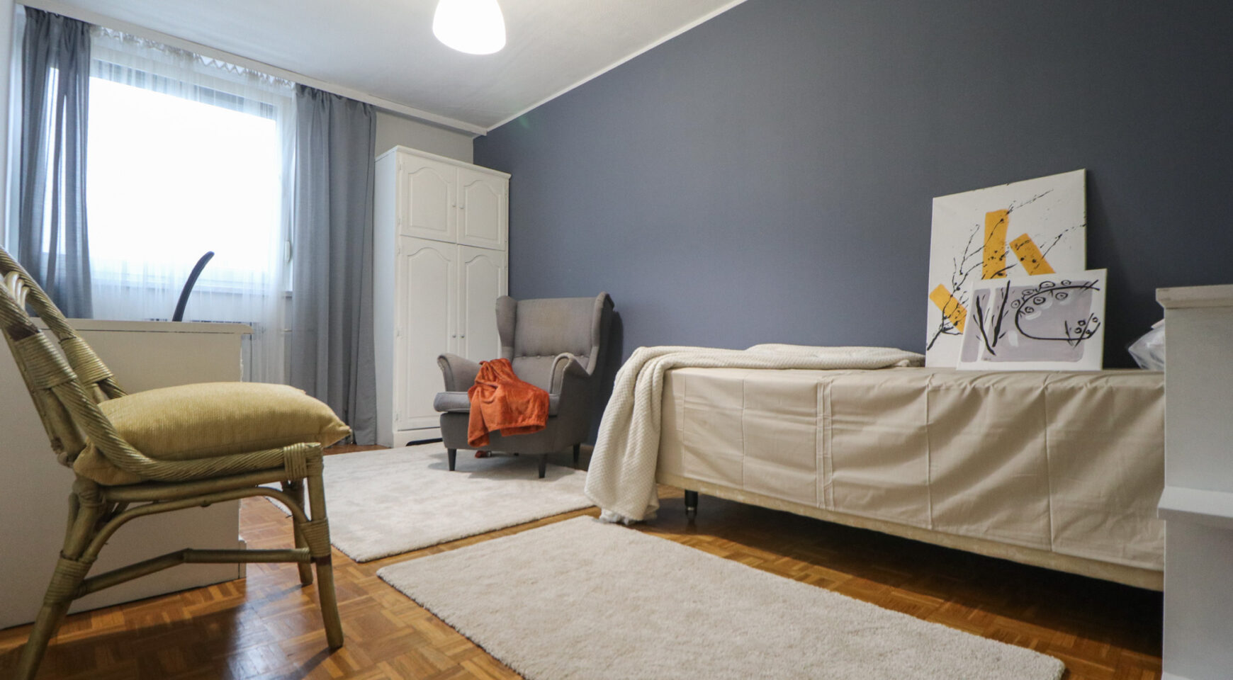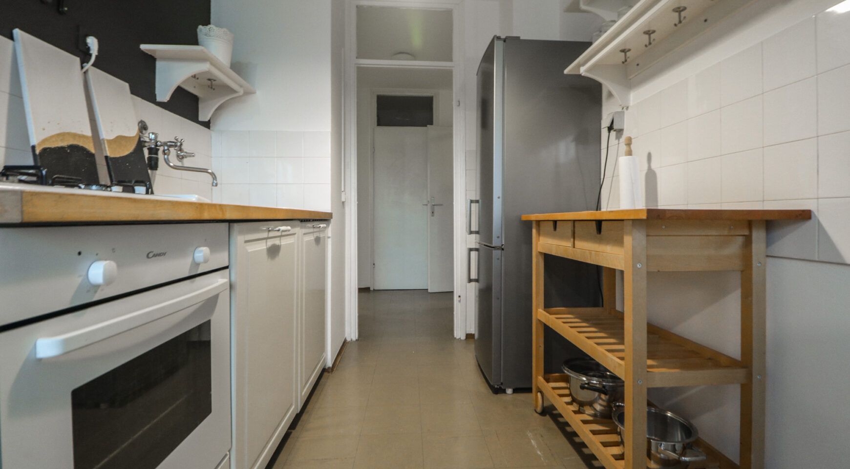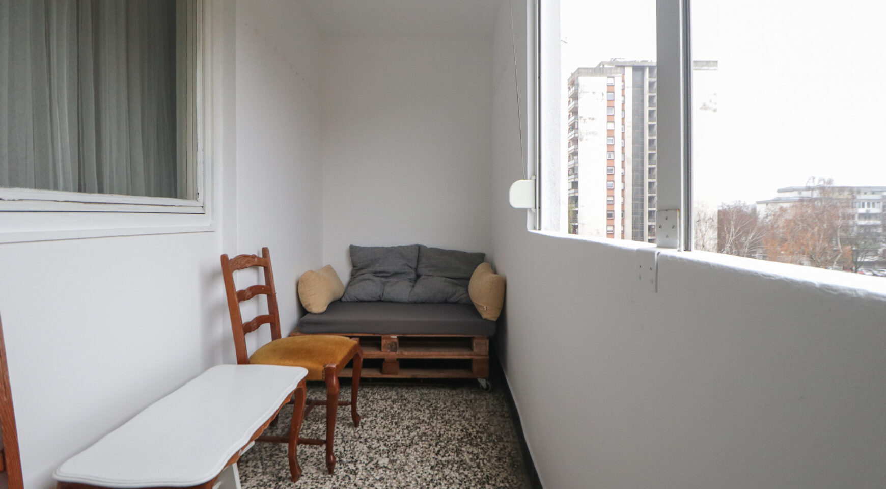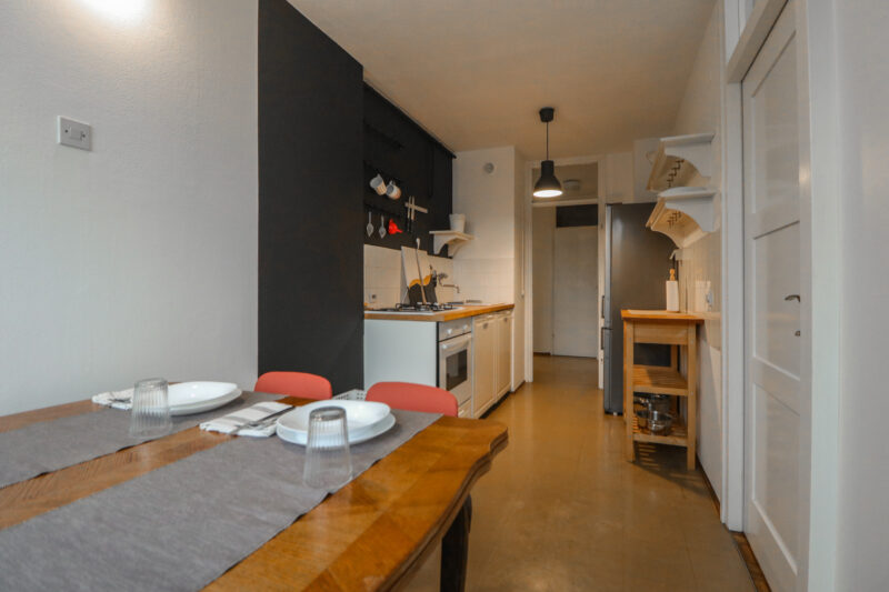 Stan je površine 65 m2, potpuno je čist i lijepo uređen. Svjetao je i topao jer je orijentiran na zapad. Svaka prostorija je lijepe veličine, a raspored stana se po potrebi može i promijeniti (sada stan idealno funkcionira za dva cimera-sobe su namještene krevetime, ormarima i radnim stolom i stolicom, a po potrebi se jednu sobu može prenamijeniti u dnevni boravak).