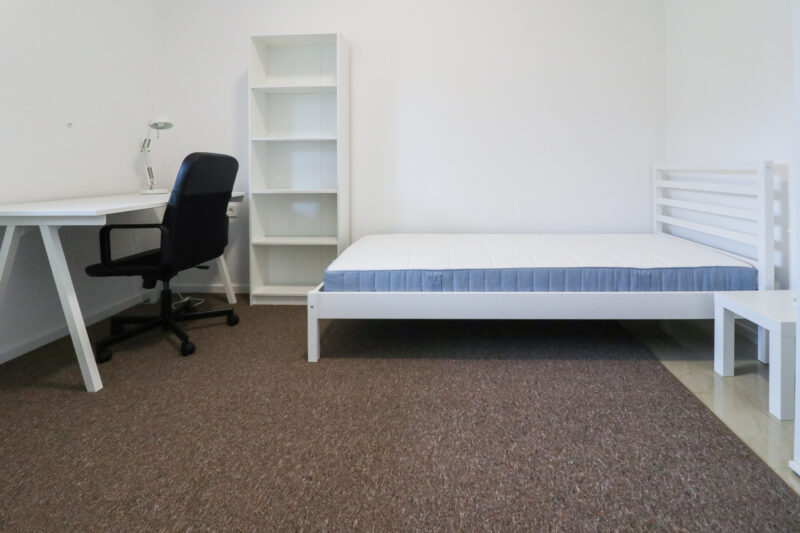 Sastoji od ulaznog hodnika, dvije spavaće sobe, kupaonice, natkrivene terase, ostave te dnevnog boravka koji je spojen s kuhinjom i blagovaonskim dijelom. Stanarima je na korištenje dostupno i spremište od 20 m2 u dvorištu.