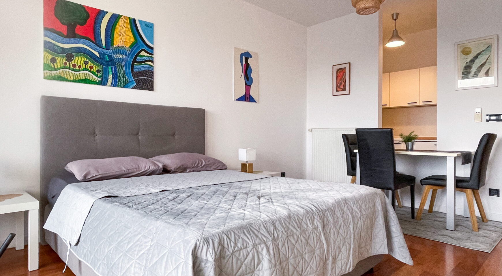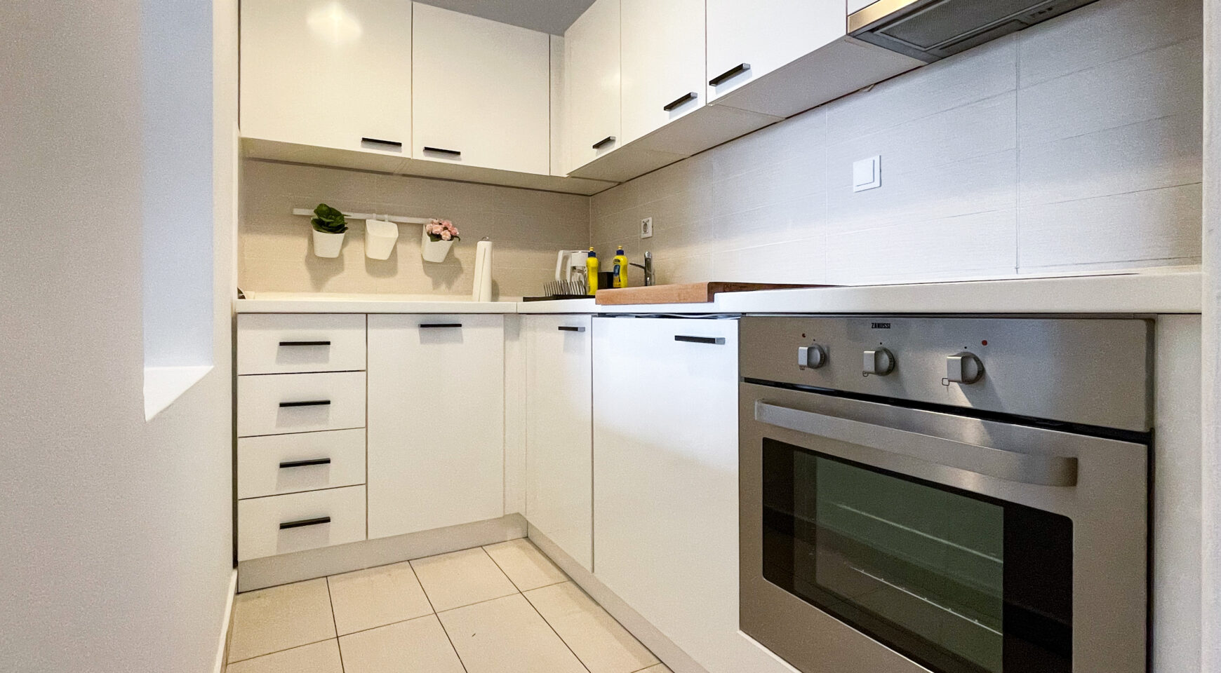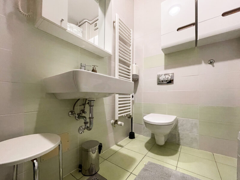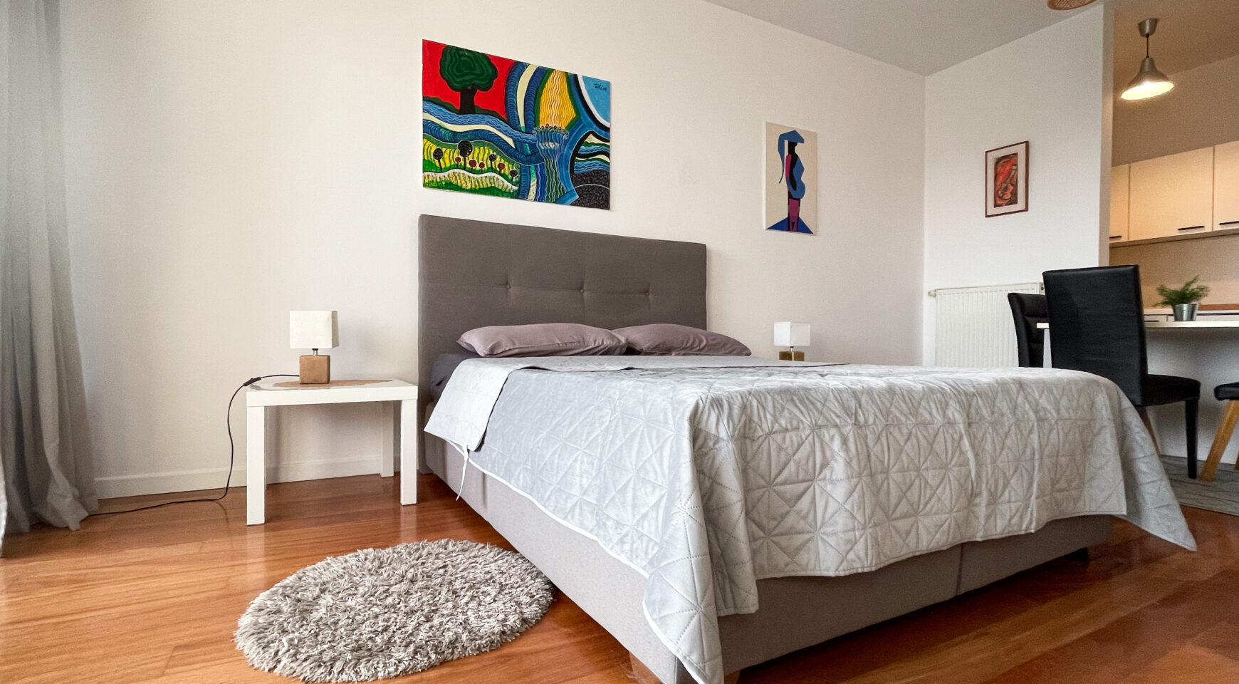 Stan se nalazi na 5. katu moderne zgrade s liftom (ukupno 8 katova), a zahvaljujući promišljenom uređenju, pruža osjećaj luksuza i topline već pri samom ulasku. Interijer je dizajniran tako da svaki kvadrat ima svoju svrhu, elegantan ulazni hodnik s ugradbenim ormarima po mjeri, moderno uređena kupaonica s kadom, perilicom rublja i profinjenim detaljima, opremljena kuhinja spremna za svakodnevnu upotrebu te otvoreni dnevno-spavaći prostor s udobnim bračnim krevetom 160 × 200 cm, pažljivo biranim namještajem, TV-om i blagovaonskim kutkom.