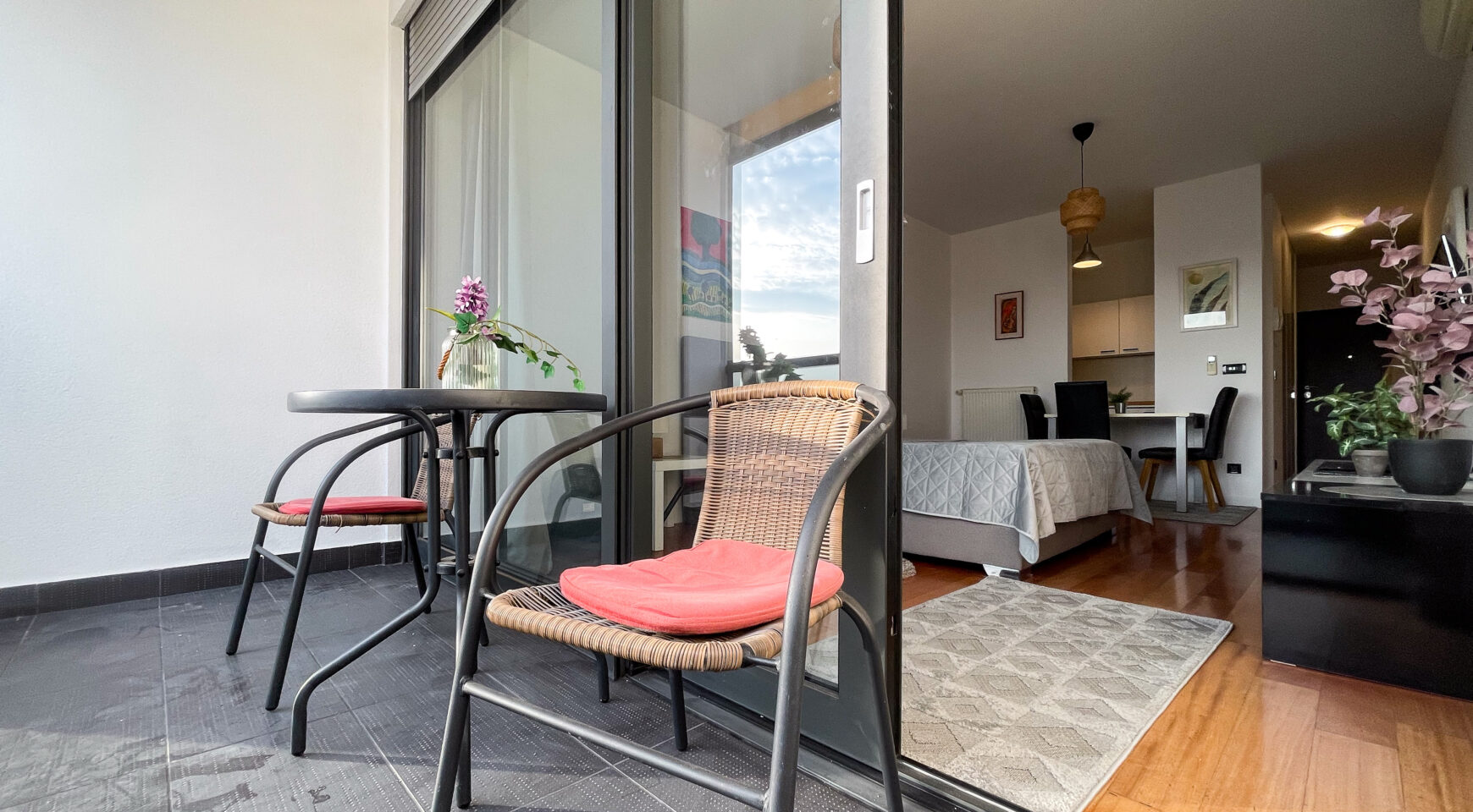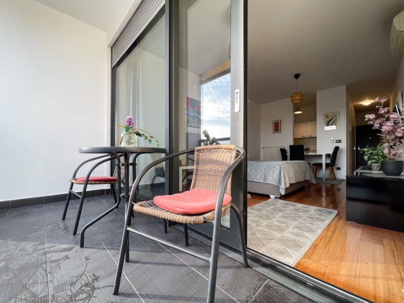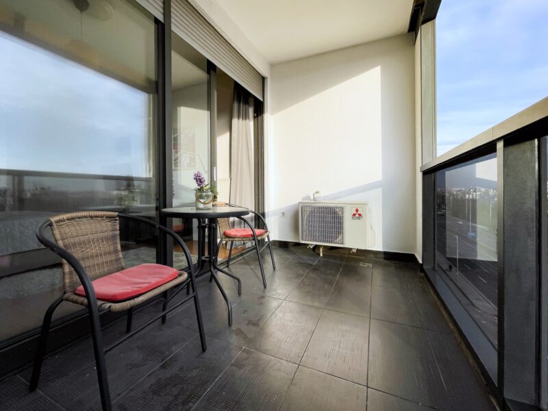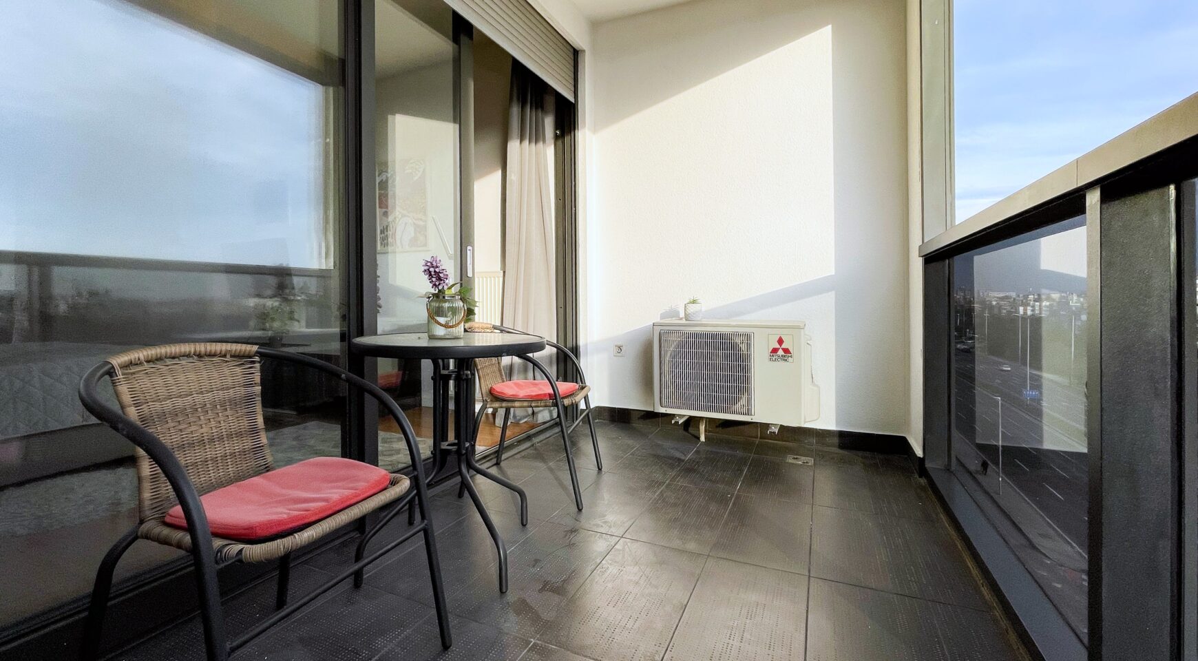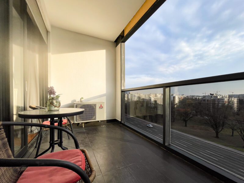 Posebnu čar daje lođa s otvorenim pogledom na aveniju – idealno mjesto za jutarnju kavu, večernje opuštanje ili jednostavno uživanje u dinamici grada iz vlastite privatnosti.