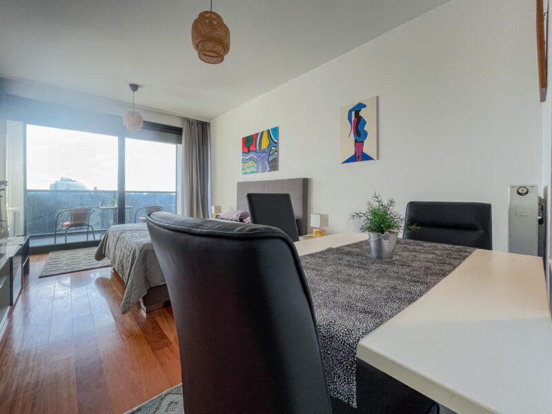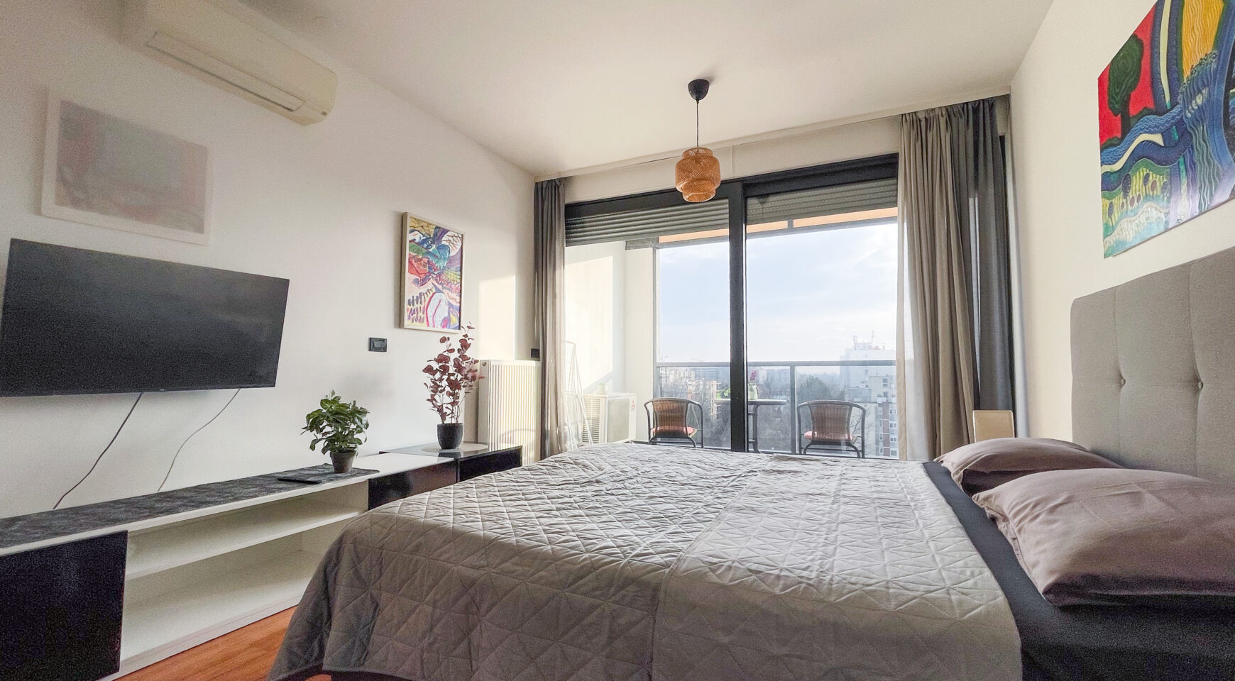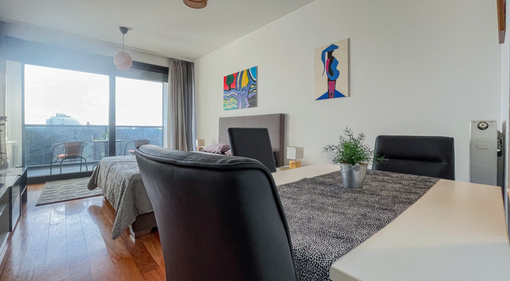 Posebnu čar daje lođa s otvorenim pogledom na aveniju – idealno mjesto za jutarnju kavu, večernje opuštanje ili jednostavno uživanje u dinamici grada iz vlastite privatnosti.
