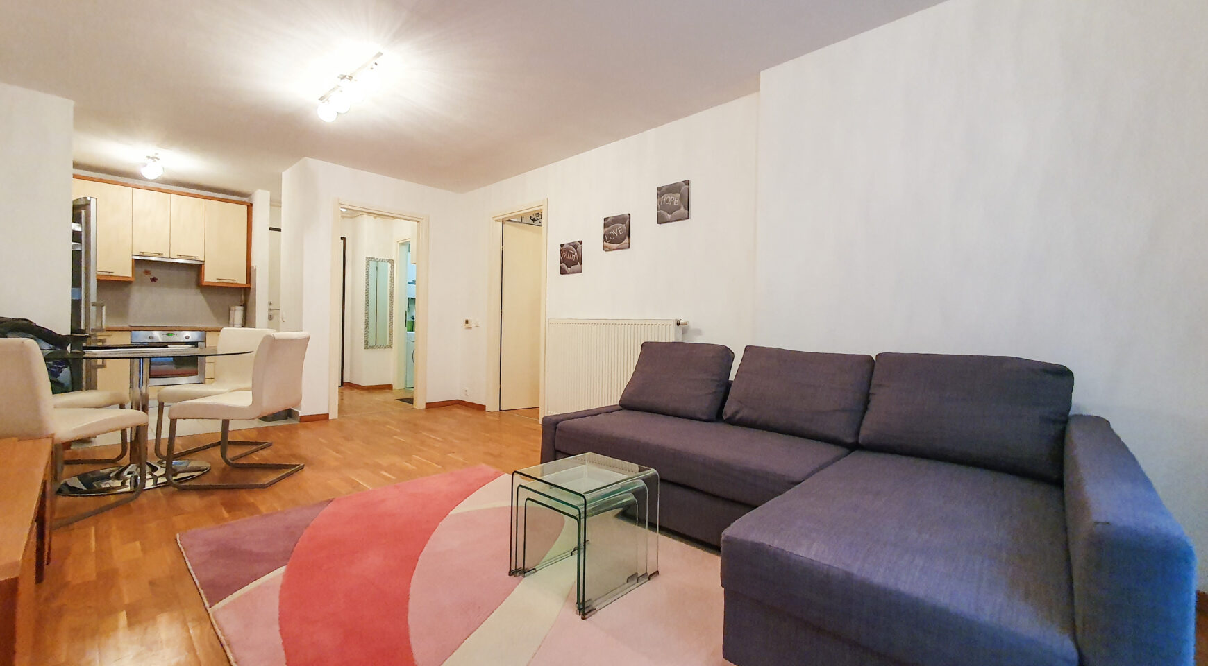 Sastoji se od ulaznog prostora, kupaonice, kuhinje, dnevnog boravka s blagavaonicom i spavaće sobe. Uz stan dolazi GARAŽNO PARKIRNO MJESTO na -2 etaži.