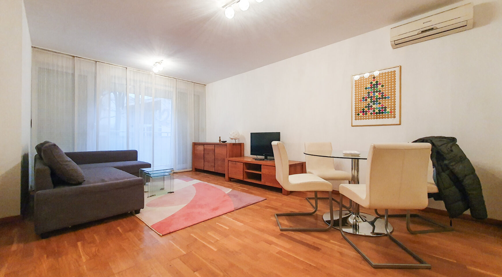 Stan se iznajmljuje kompletno namješten i opremljen. Grijanje je etažno plinsko, ugrađena su protuprovalna vrata i klima.