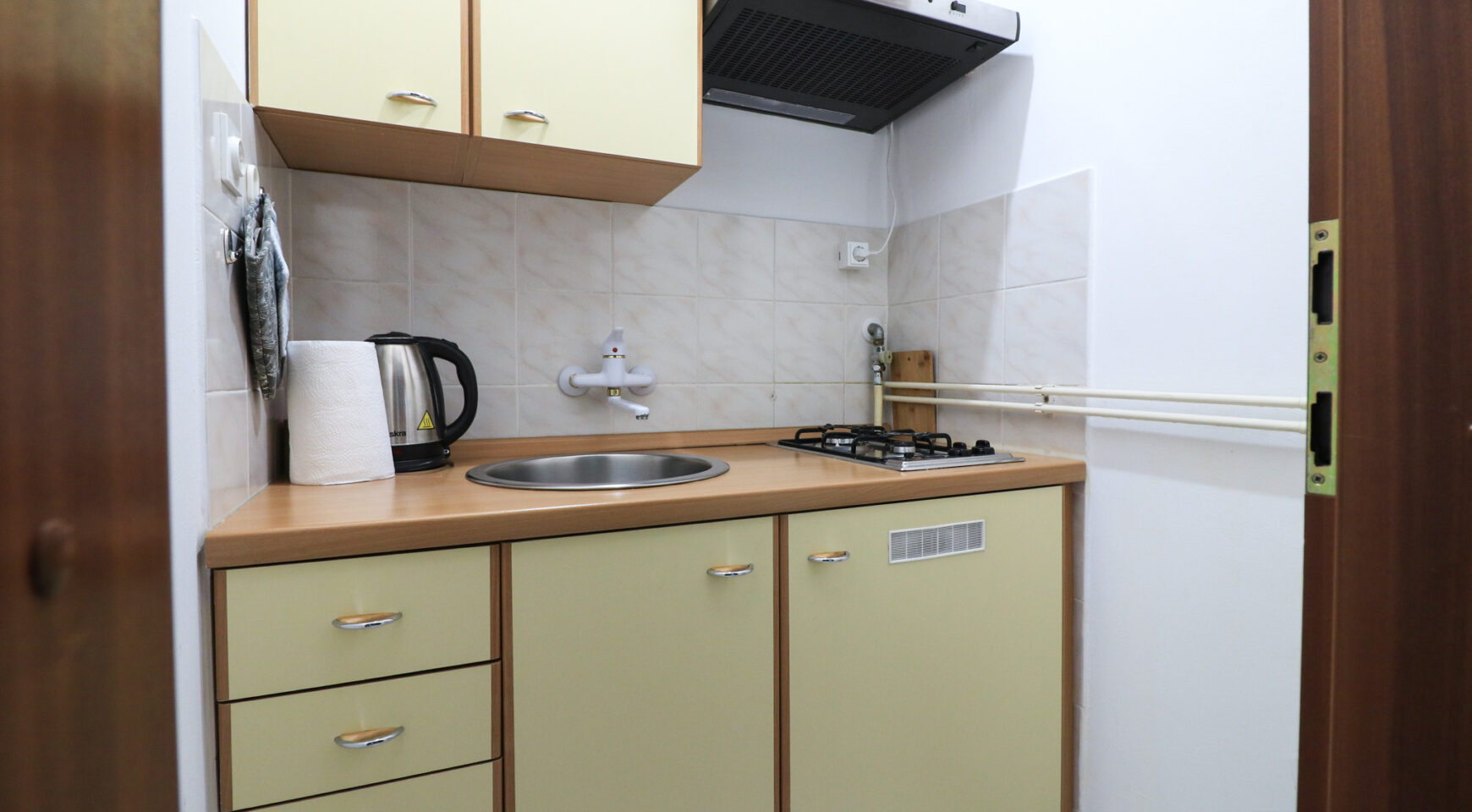 Orijentirana je na mirnu i zelenu, dvorišnu stranu, a sastoji se od ulaznog dijela, kuhinje, kupaonice i veće sobe u kojoj je dnevni i spavaći dio.
