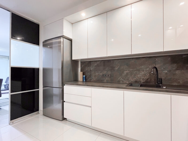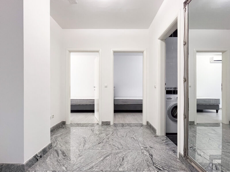 Potpuno je namješten i opremljen – tri klima uređaja, perilica posuđa, perilica rublja, hladnjak sa zamrzivačem, napa, štednjak, TV, mnoštvo ormara, veliki kauč na razvlačenje, video portafon, provučena mreža za optički internet i sl.