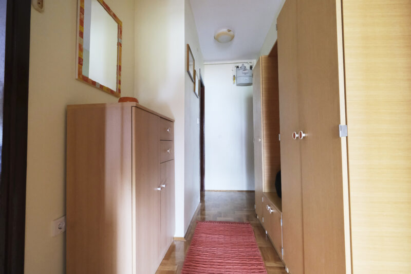 Odličnog je rasporeda, a sastoji se od ulaznog hodnika, dnevnog boravka s kuhinjom i blagovaonskim dijelom, velikog balkona, spavaće sobe i kupaonice. Izlaz na balkon je iz dnevnog boravka i spavaće sobe.